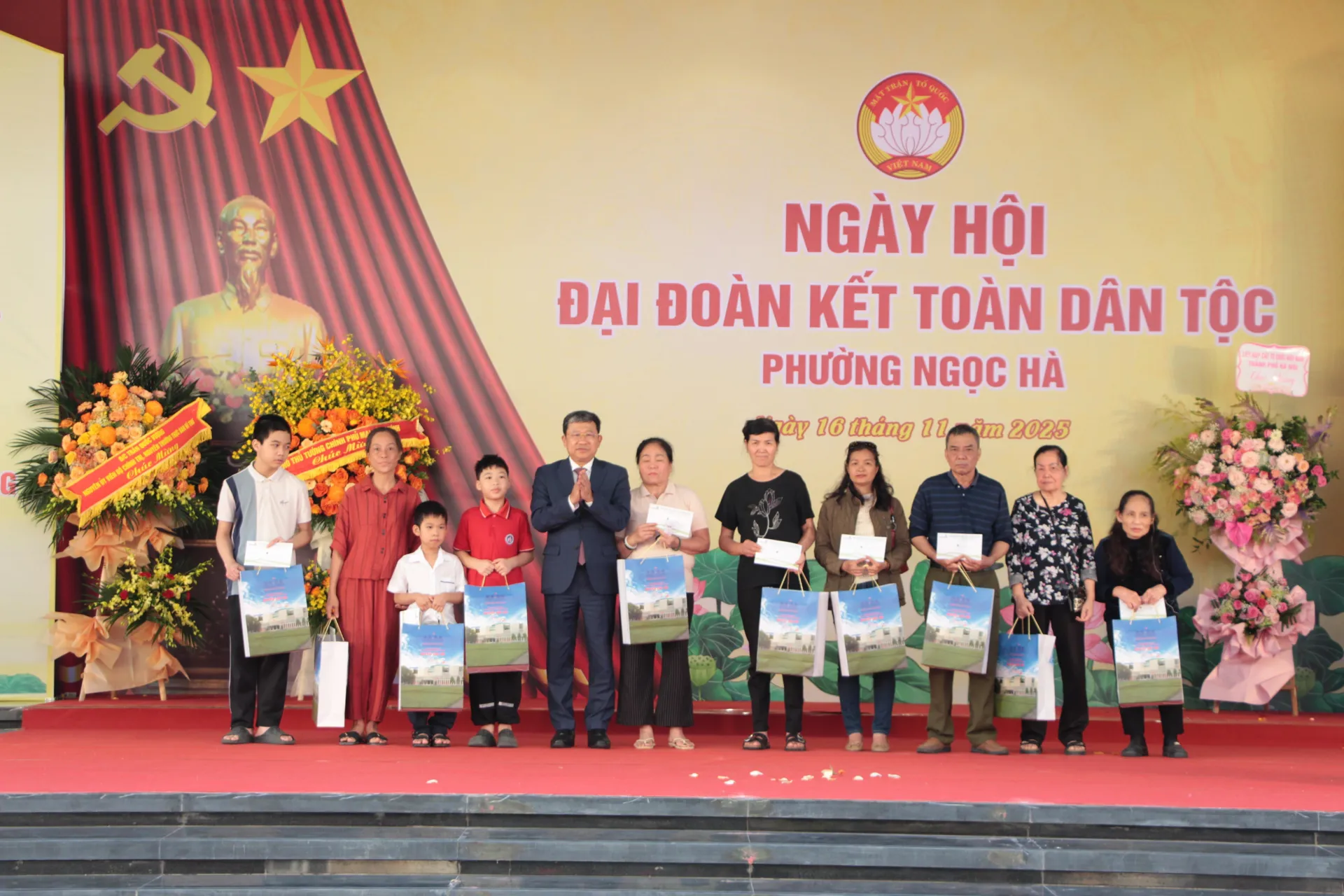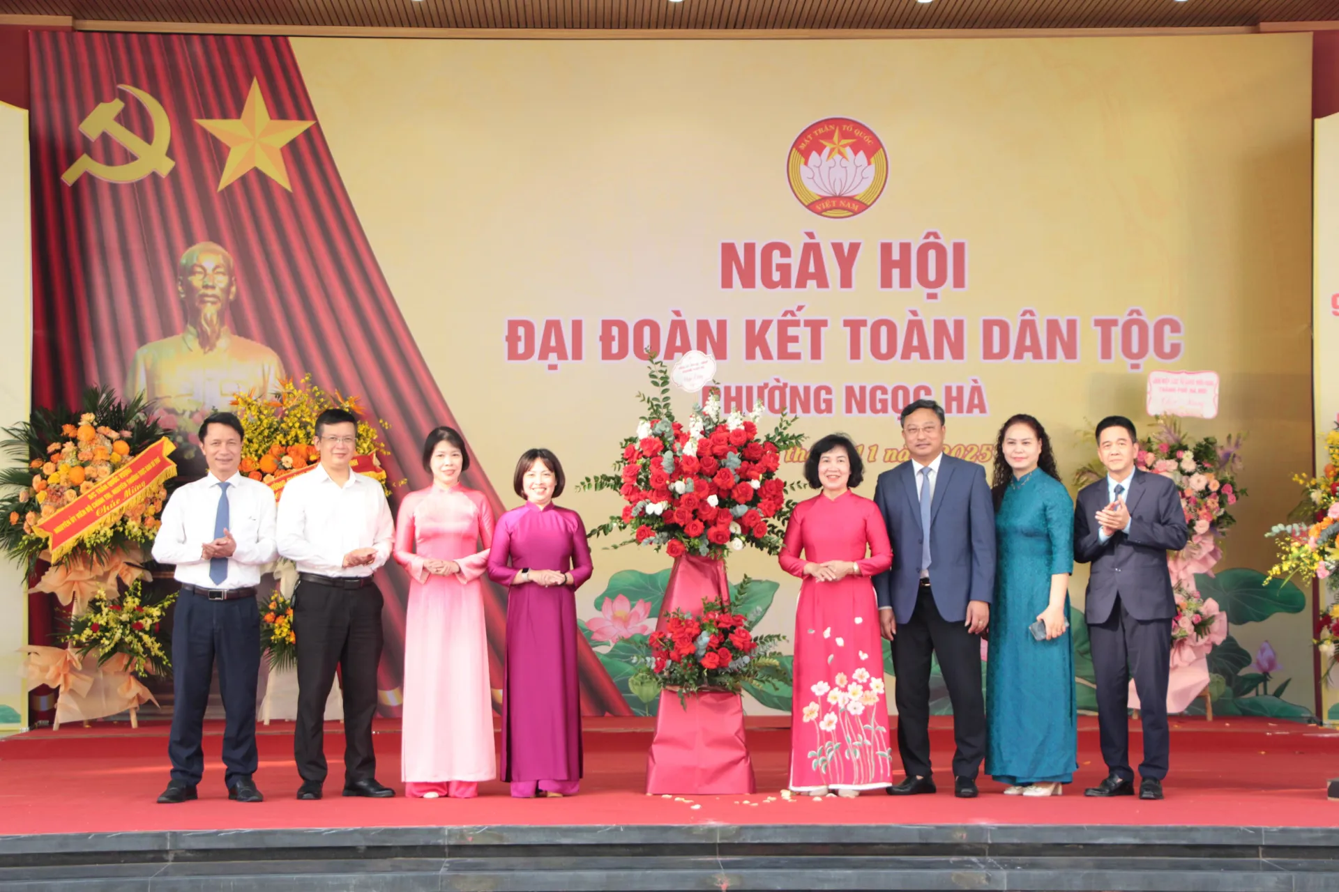 Phường Ngọc Hà nhận lẵng hoa tươi thắm của lãnh đạo Trung ương nhân Ngày hội Đại đoàn kết toàn dân tộc.