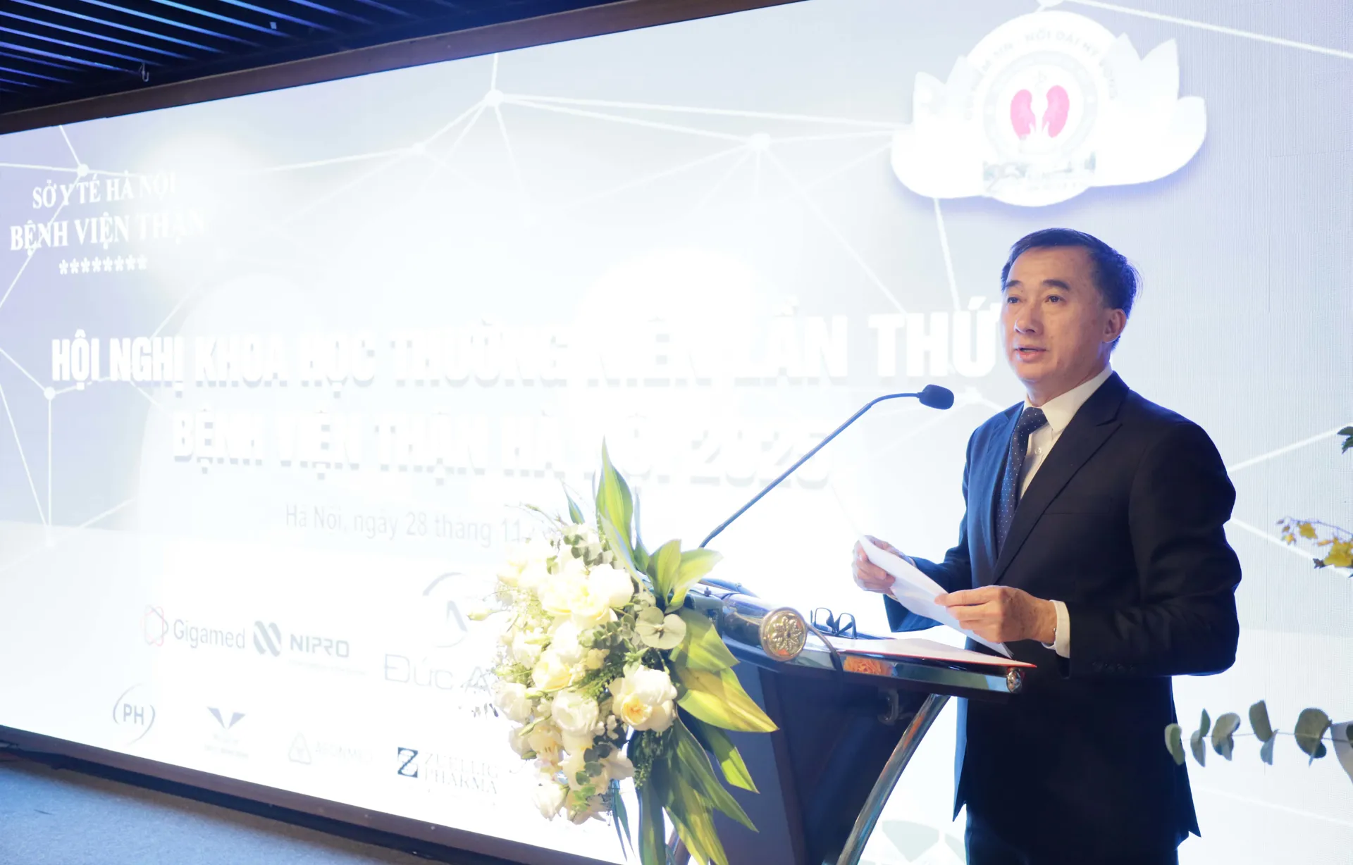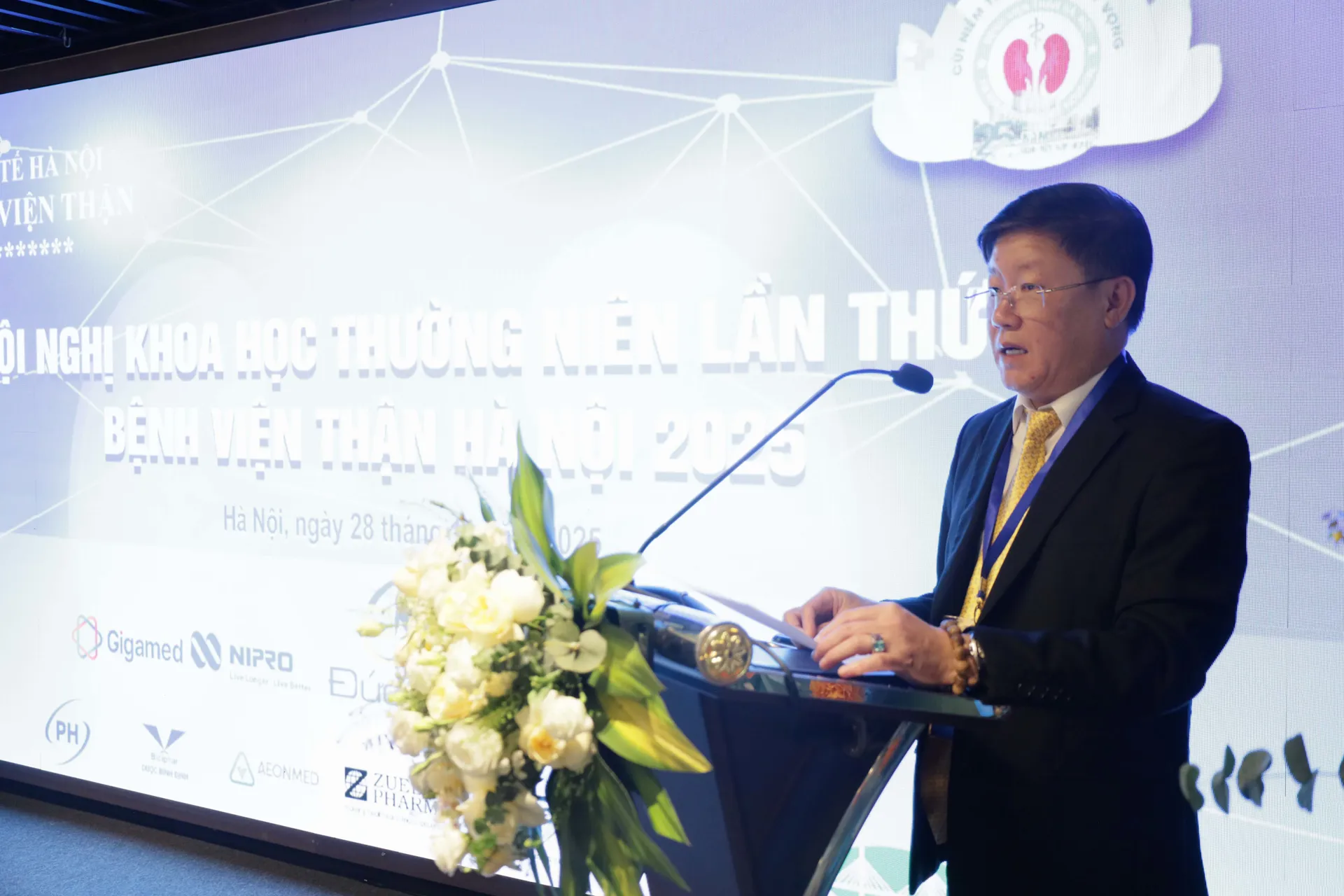 ThS.BS CK2 Phan Tùng Lĩnh - Giám đốc Bệnh viện Thận Hà Nội cho biết, hội nghị được tổ chức với chủ đề “Biến chứng dài ngày ở người bệnh thận nhân tạo chu kỳ” – một chủ đề không chỉ mang ý nghĩa học thuật sâu sắc, còn là một thông điệp về trách nhiệm và sứ mệnh của những người làm công tác điều trị bệnh thận mạn tính. Đây là lĩnh vực đòi hỏi sự bền bỉ, chính xác và đầy nhân văn, bởi mỗi người bệnh chạy thận nhân tạo là một cuộc đời đang được đồng hành, chăm sóc và nâng đỡ từng ngày.