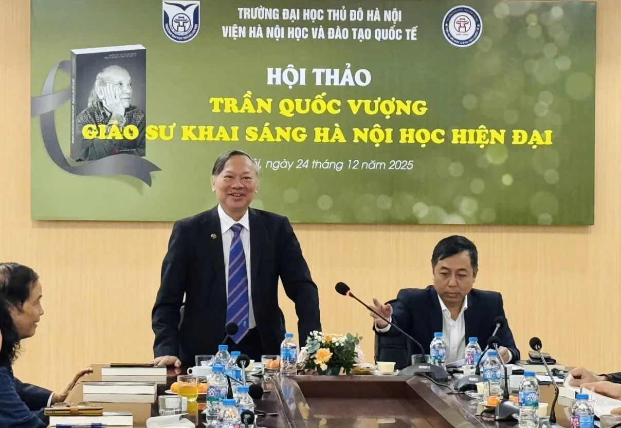 Phát biểu đề dẫn tại hội thảo, PGS.TS Đỗ Hồng Cường – Hiệu trưởng Trường Đại học Thủ đô Hà Nội nhấn mạnh: dù đã 20 năm trôi qua kể từ ngày GS Trần Quốc Vượng rời cõi tạm, nhưng di sản học thuật, tư tưởng khoa học và nhân cách trí thức của ông vẫn hiện diện bền bỉ trong đời sống nghiên cứu và giáo dục Việt Nam.
