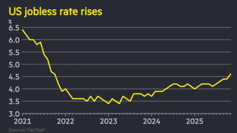 Tỷ lệ thất nghiệp này là mức cao nhất kể từ tháng 9/2021 và tăng so với mức 4,4% ghi nhận vào tháng 9/2025. Ảnh: FT
