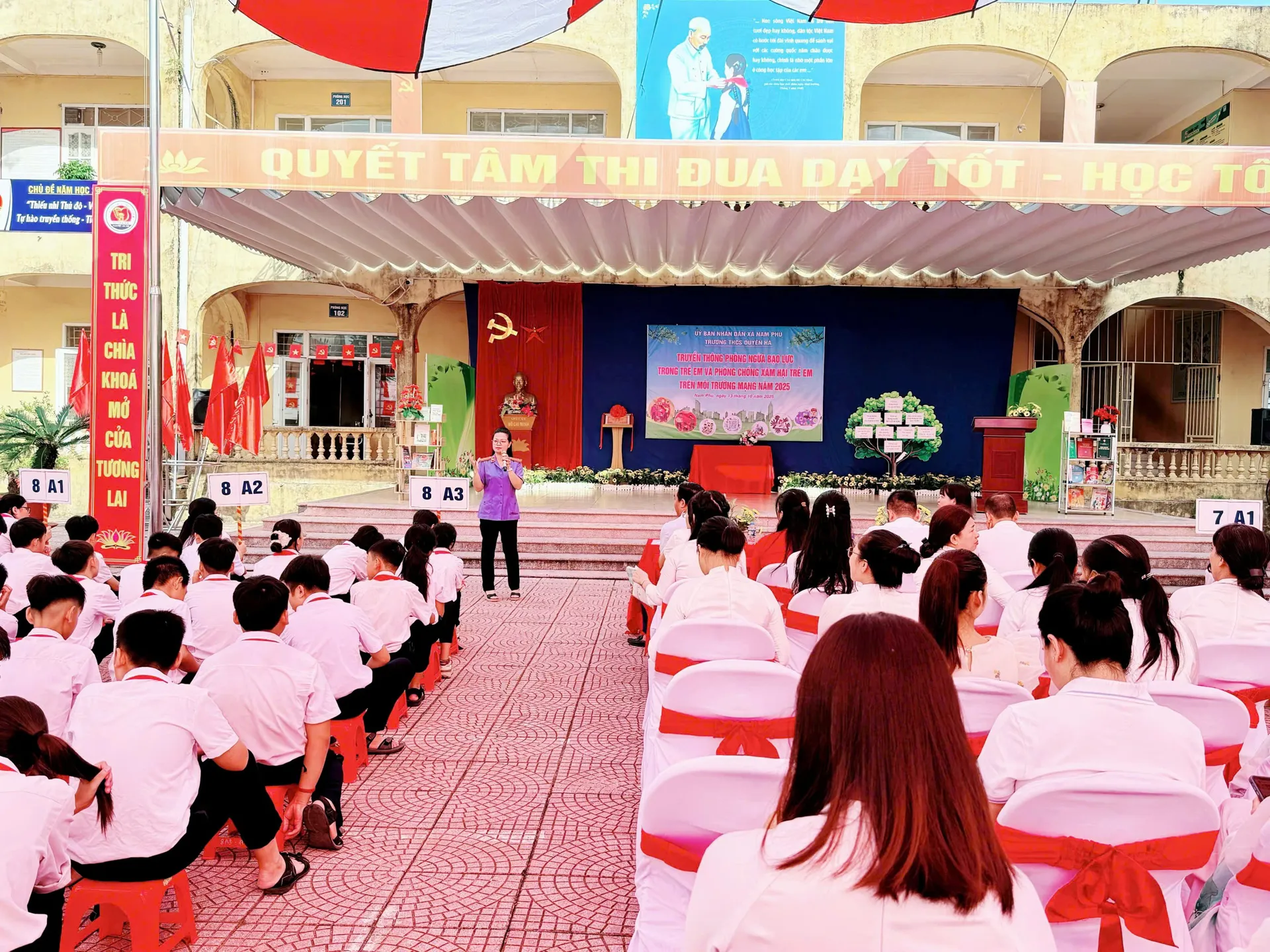 Đồng chí Mai Thị Phượng nhấn mạnh: “Phòng ngừa, ngăn chặn bạo lực và xâm hại trẻ em không chỉ là trách nhiệm của gia đình, nhà trường, mà là nhiệm vụ của toàn xã hội. Mỗi học sinh cần tự trang bị kiến thức và kỹ năng sống để bảo vệ mình và lan tỏa lối sống tích cực, nhân ái trong cộng đồng học đường.”