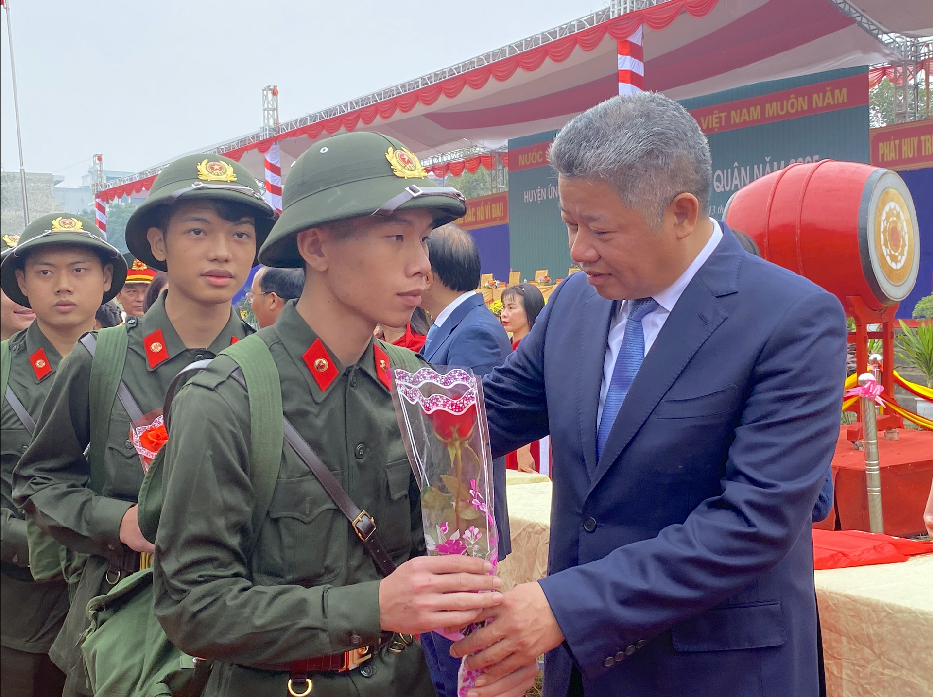 Phát biểu tại buổi lễ, Chủ tịch UBND huyện Ứng Hoà Nguyễn Tiến Thiết cho biết: “Đây là kết quả có sự đóng góp tích cực, nhiệt tình, trách nhiệm của các cấp uỷ đảng, sự chỉ đạo chặt chẽ của Hội đồng nghĩa vụ quân sự huyện, các cơ quan chuyên môn, vai trò các đoàn thể, Nhân dân và gia đình, đã giáo dục, động viên con em mình có nhận thức đúng đắn về nghĩa vụ, trách nhiệm của thanh niên đối với sự nghiệp xây dựng và bảo vệ Tổ quốc, giữ gìn an ninh chính trị, trật tự an toàn xã hội; xây dựng đất nước bước vào Kỷ nguyên mới - kỷ nguyên vươn mình của dân tộc theo tư tưởng chỉ đạo, định hướng lớn của Đảng và đồng chí Tổng Bí thư”.