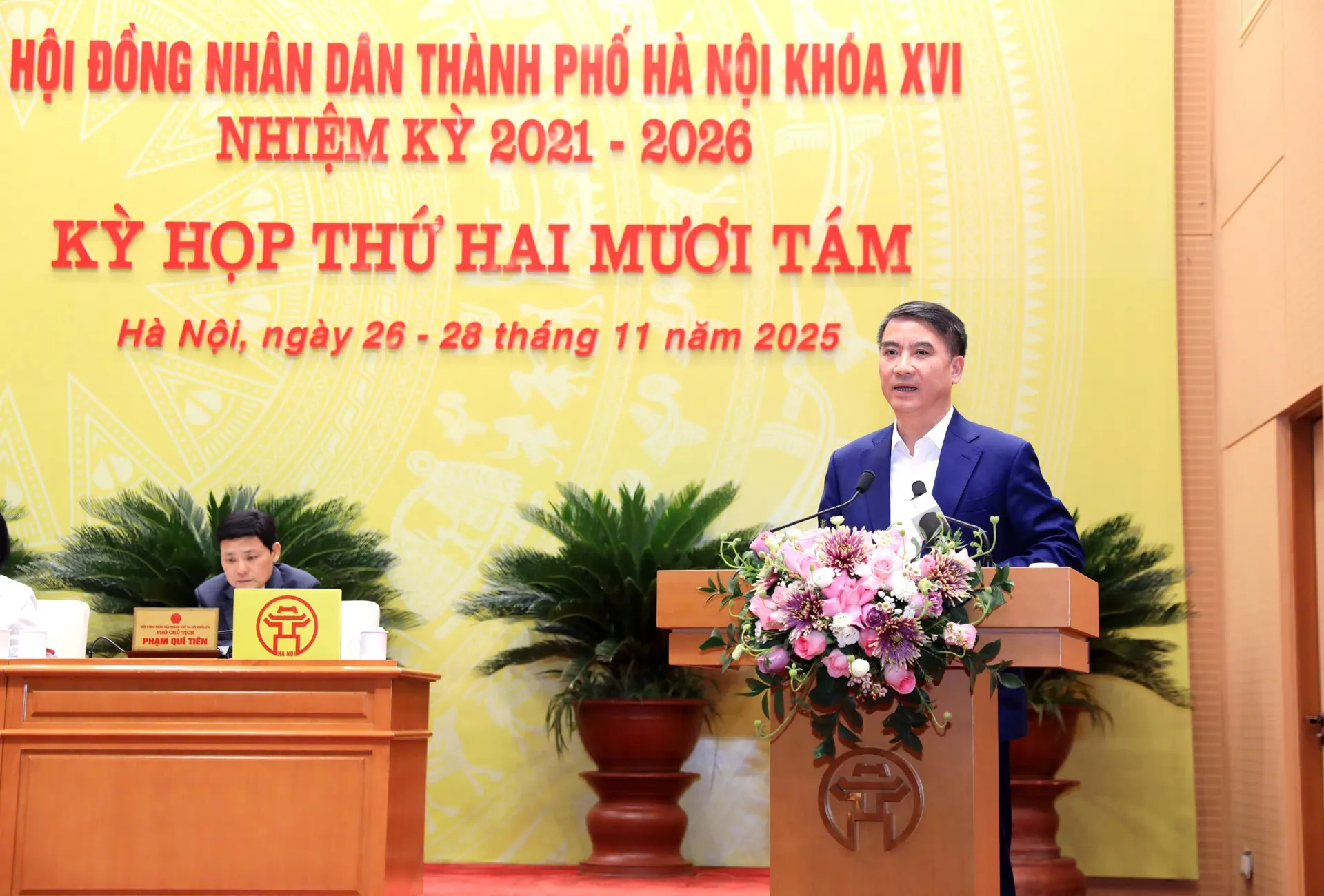 Theo đó, Ủy viên Ban Thường vụ Thành ủy, Phó Chủ tịch UBND Nguyễn Xuân Lưu đã báo cáo tờ trình về: Điều chỉnh tổng quyết toán thu, chi ngân sách TP Hà Nội năm 2024; Kế hoạch tài chính 05 năm 2026-2030 TP Hà Nội; Định mức phân bổ ngân sách và tỷ lệ phần trăm (%) đối với các khoản thu phân chia giữa các cấp ngân sách Thành phố; Dự toán ngân sách địa phương và phân bổ ngân sách cấp TP Hà Nội năm 2026; Kế hoạch đầu tư công năm 2026; cập nhật Kế hoạch đầu tư công trung hạn 5 năm 2021-2025 và Kế hoạch đầu tư công năm 2025 của Thành phố.