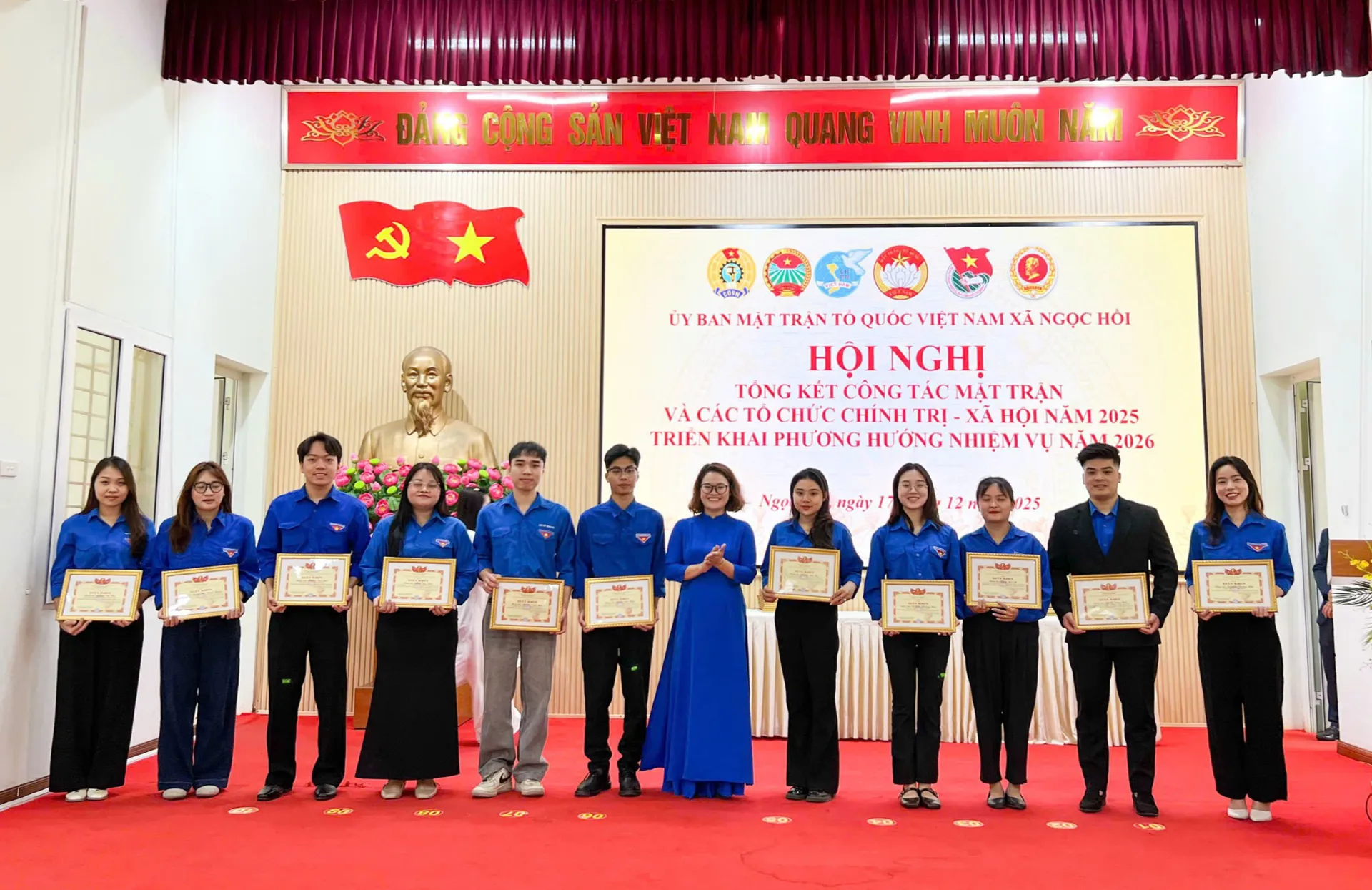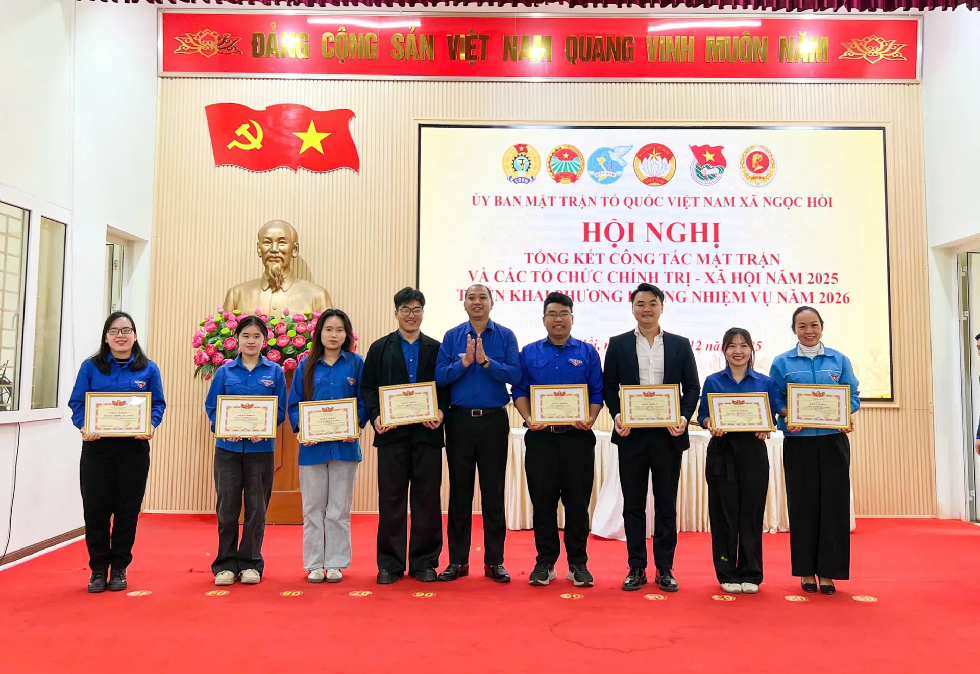 Lãnh đạo Đoàn Thanh niên xã Ngọc Hồi trao khen thưởng cho các tập thể, cá nhân có thành tích xuất sắc.