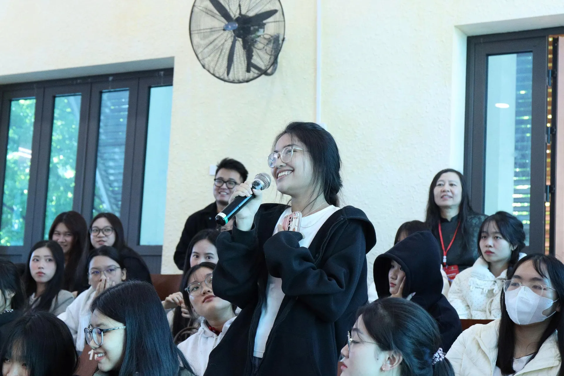 Nhiều bạn đọc trẻ yêu văn học đặt câu hỏi tại hội thảo.