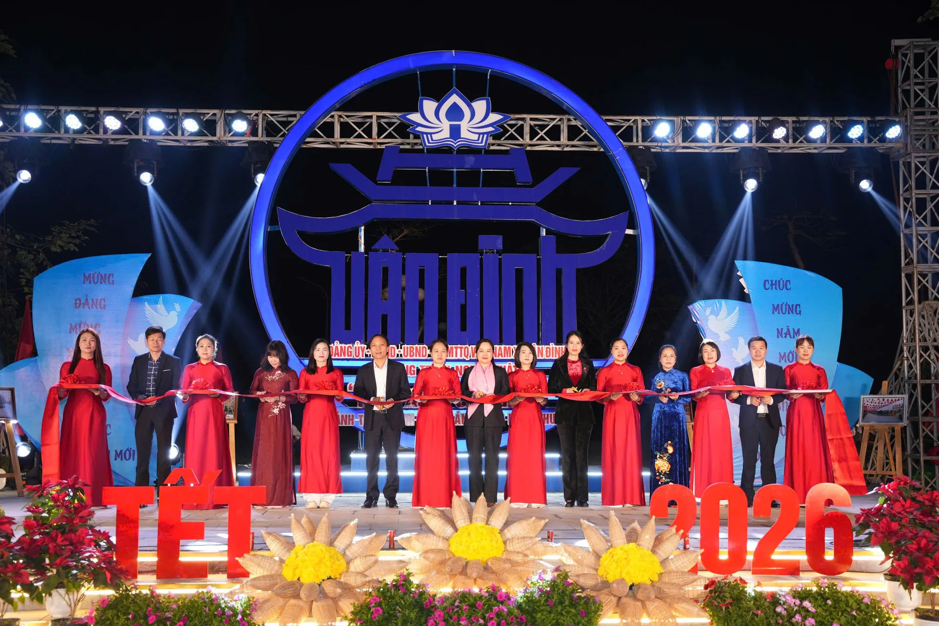 Kinhtedothi - Tối 12/2, tại Trung tâm Thương mại xã Vân Đình, địa phương tổ chức chương trình nghệ thuật “Mùa xuân ơn Đảng”, kết hợp khánh thành công trình “Con đường ánh sáng nghệ thuật”, trao giải cuộc thi trang trí Xuân và khai mạc triển lãm ảnh, thiết thực chào mừng 96 năm Ngày thành lập Đảng Cộng sản Việt Nam và Xuân Bính Ngọ 2026.