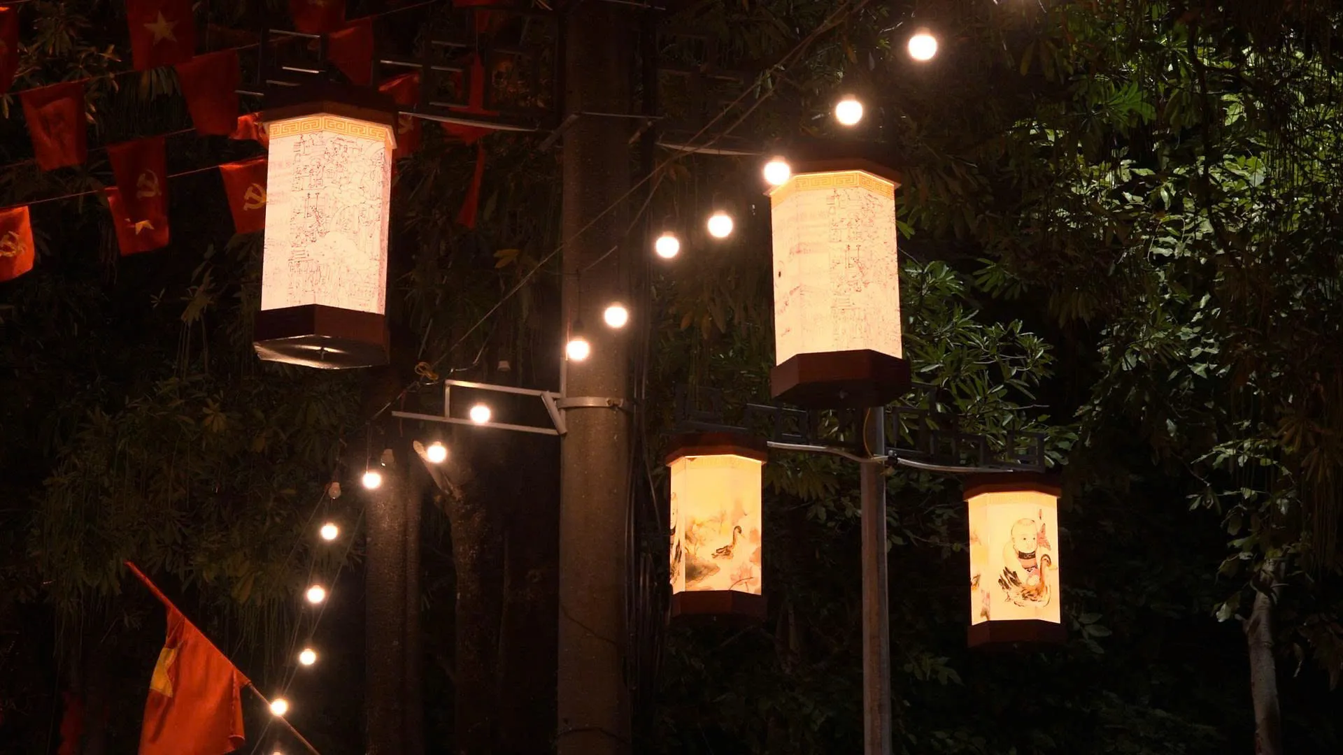 Hệ thống đèn kéo quân được lắp đặt dọc tuyến trung tâm xã Vân Đình, tạo điểm nhấn cho công trình “Con đường ánh sáng nghệ thuật” dịp Xuân Bính Ngọ 2026.