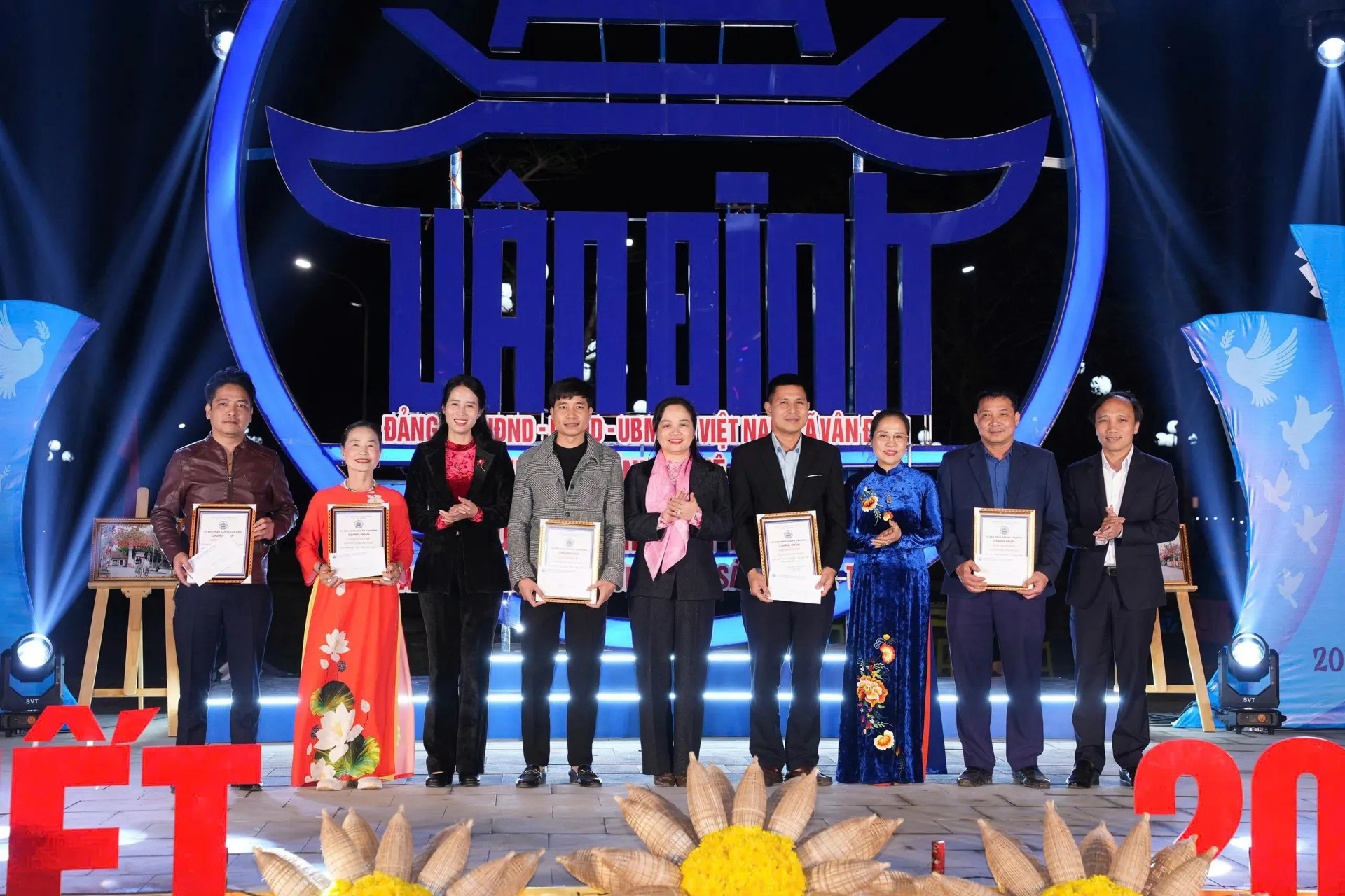 Lãnh đạo xã Vân Đình trao giấy chứng nhận, vinh danh các tập thể, cá nhân có đóng góp tiêu biểu trong chương trình khai mạc công trình “Con đường ánh sáng nghệ thuật” Xuân Bính Ngọ 2026 tại trung tâm thị trấn Vân Đình.