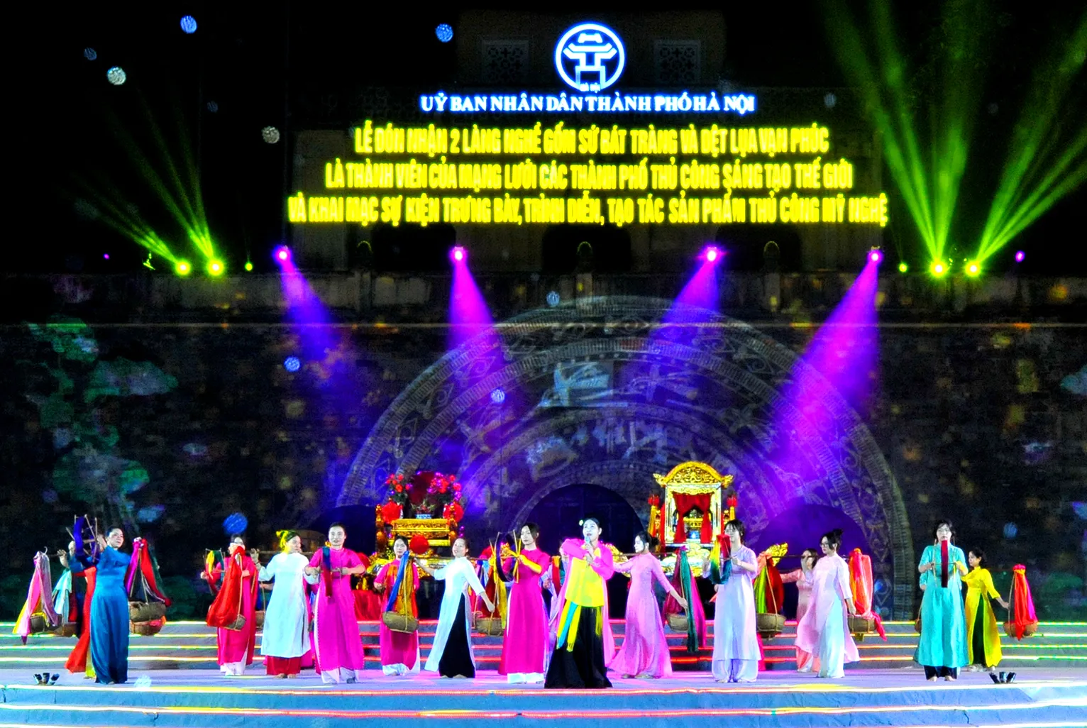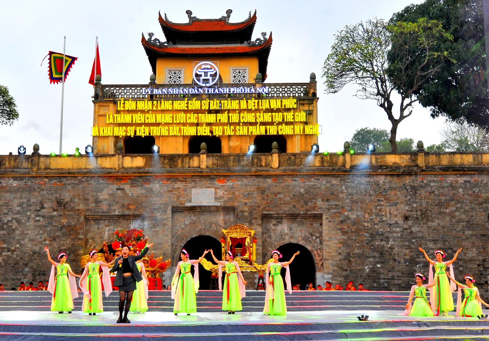 Lễ đón nhận 2 làng nghề gốm sứ Bát Tràng và dệt lụa Vạn Phúc là thành viên của mạng lưới các thành phố thủ công sáng tạo trên toàn thế giới.