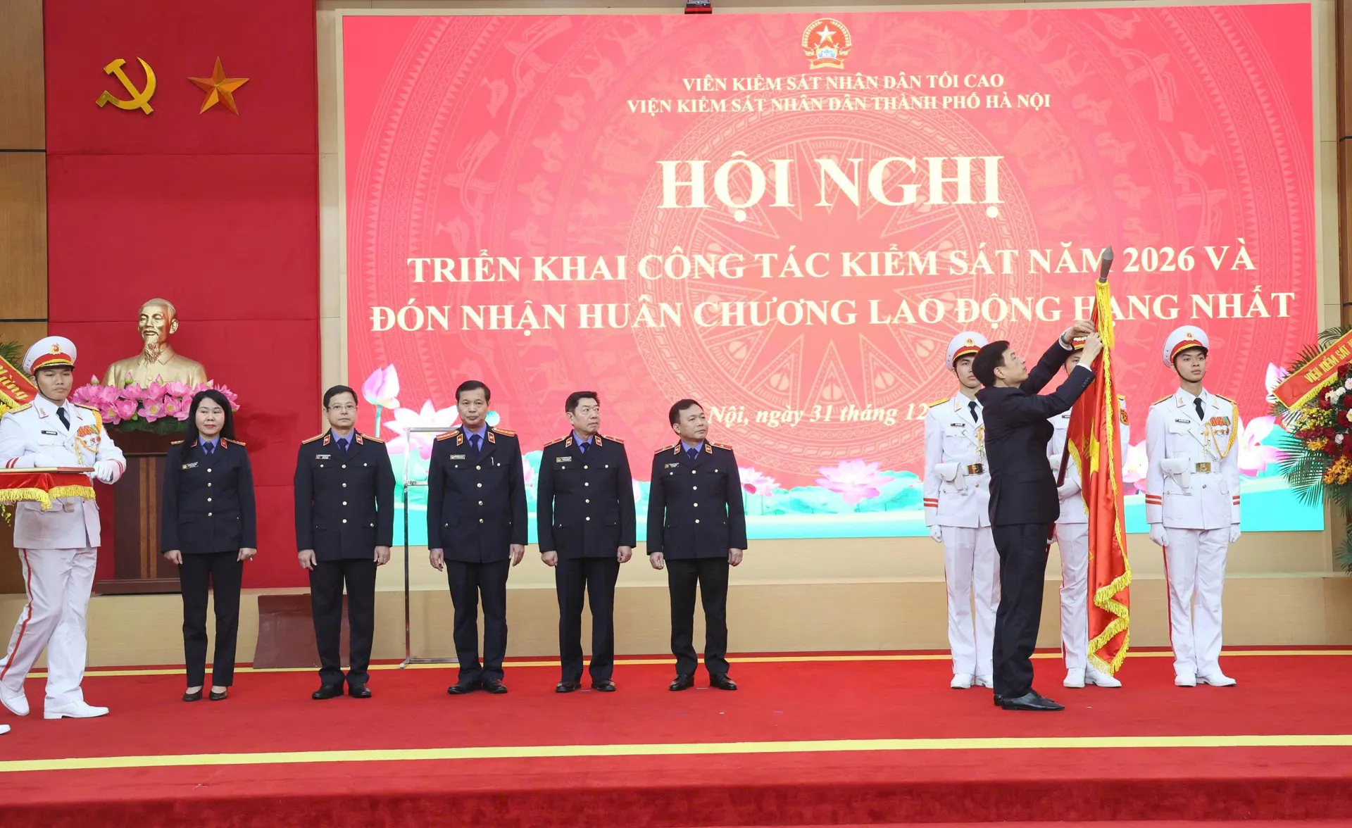 Kinhtedothi-Sáng 31/12, Viện kiểm sát Nhân dân (VKSND) TP Hà Nội tổ chức Hội nghị triển khai công tác kiểm sát năm 2026 và đón nhận Huân chương Lao động hạng Nhất.