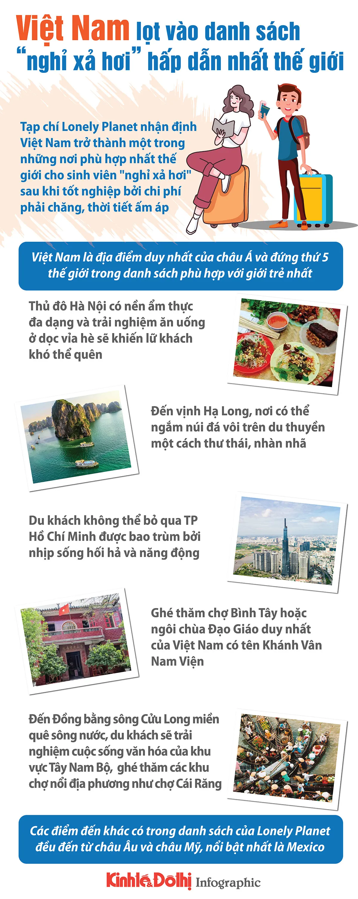 Kinhtedothi - Theo Tạp chí Lonely Planet nhận định Việt Nam đang trở thành một trong những nơi phù hợp nhất thế giới cho sinh viên "nghỉ xả hơi" sau khi tốt nghiệp bởi chi phí phải chăng, thời tiết ấm áp.