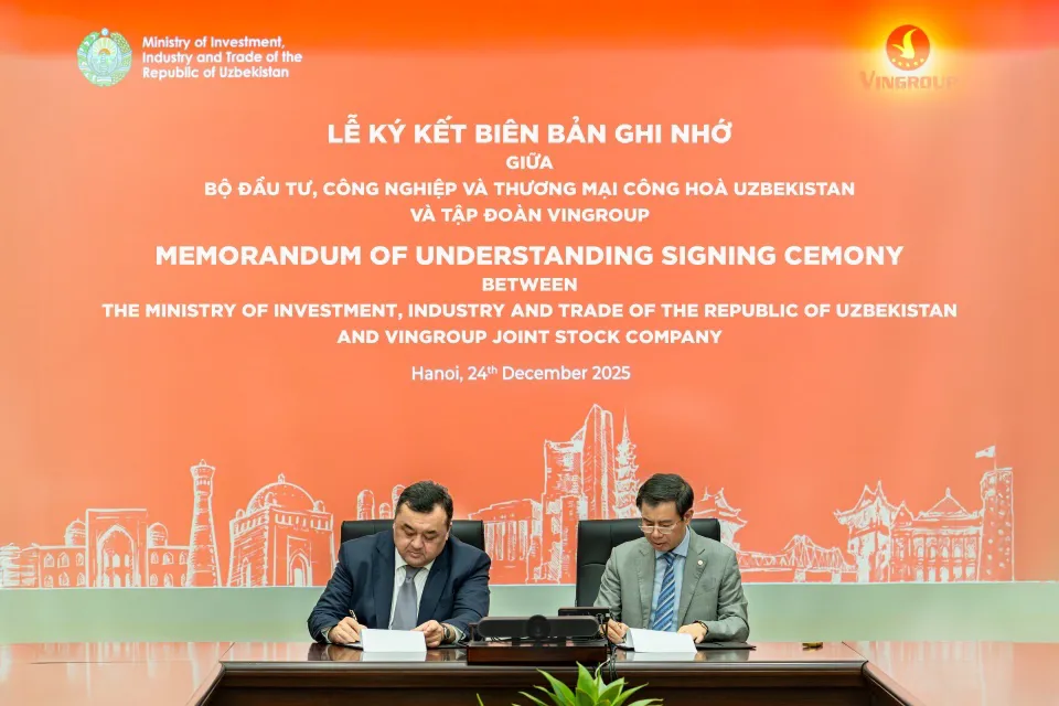 Kinhtedothi - Vingroup công bố ký kết Biên bản ghi nhớ (MOU) với Bộ Đầu tư, Công nghiệp và Thương mại Cộng hòa Uzbekistan nhằm thúc đẩy hợp tác và triển khai các dự án đa ngành tại Uzbekistan.