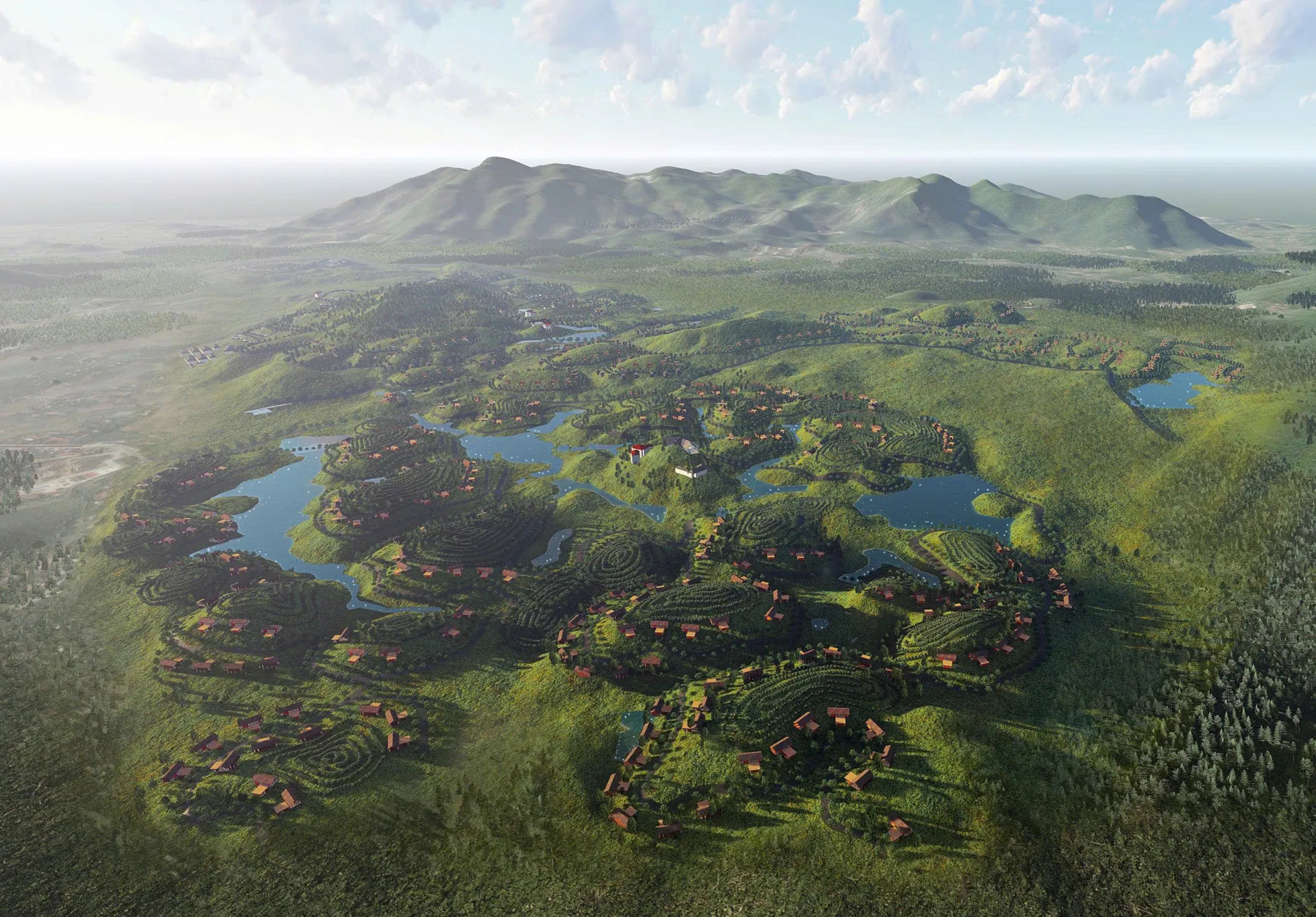 Toàn bộ quần thể có quy mô gần 650 ha, bao gồm Khu đô thị an cư & nghỉ dưỡng rộng 540 ha và Tổ hợp Khu Thể dục Thể thao – Sân golf khoảng 109 ha, được triển khai trên tinh thần bảo tồn cảnh quan bản địa và khai thác bền vững nguồn khoáng nóng thiên nhiên.