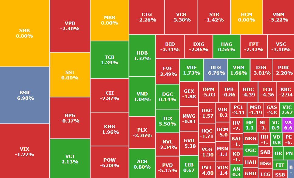 VN-Index lao dốc giữa áp lực bán mạnh