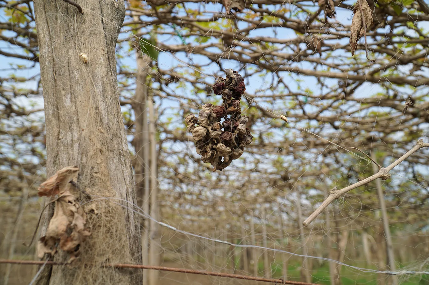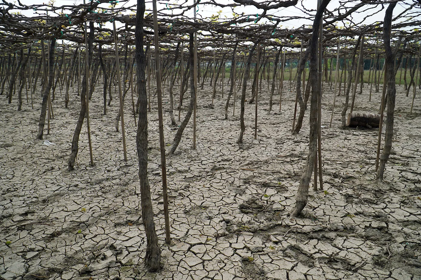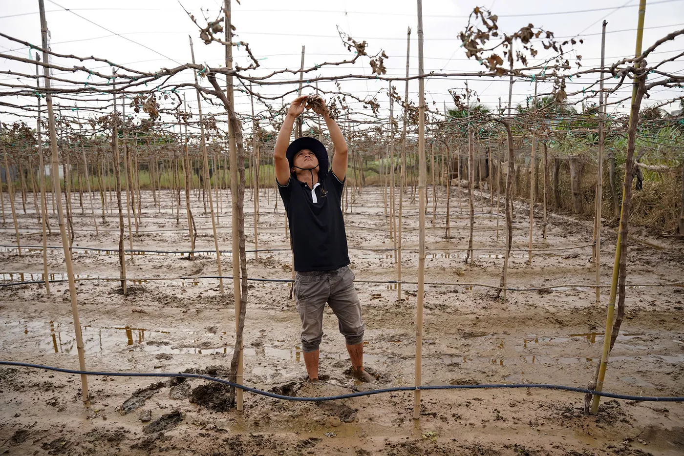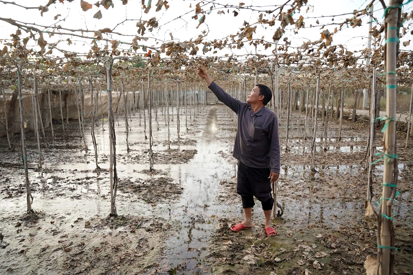 Nhiều vườn nho xanh tốt, xum xuê trái trở nên hoang tàn sau trận lũ. Người nông dân bất lực nhìn vụ mùa thất bát khi Tết Dương lịch và Tết Nguyên đán đã cận kề.