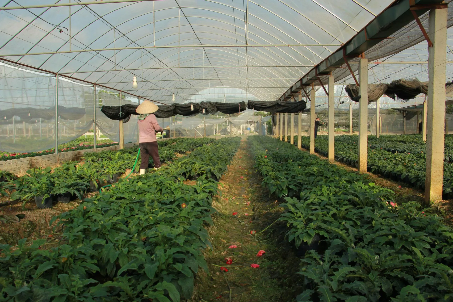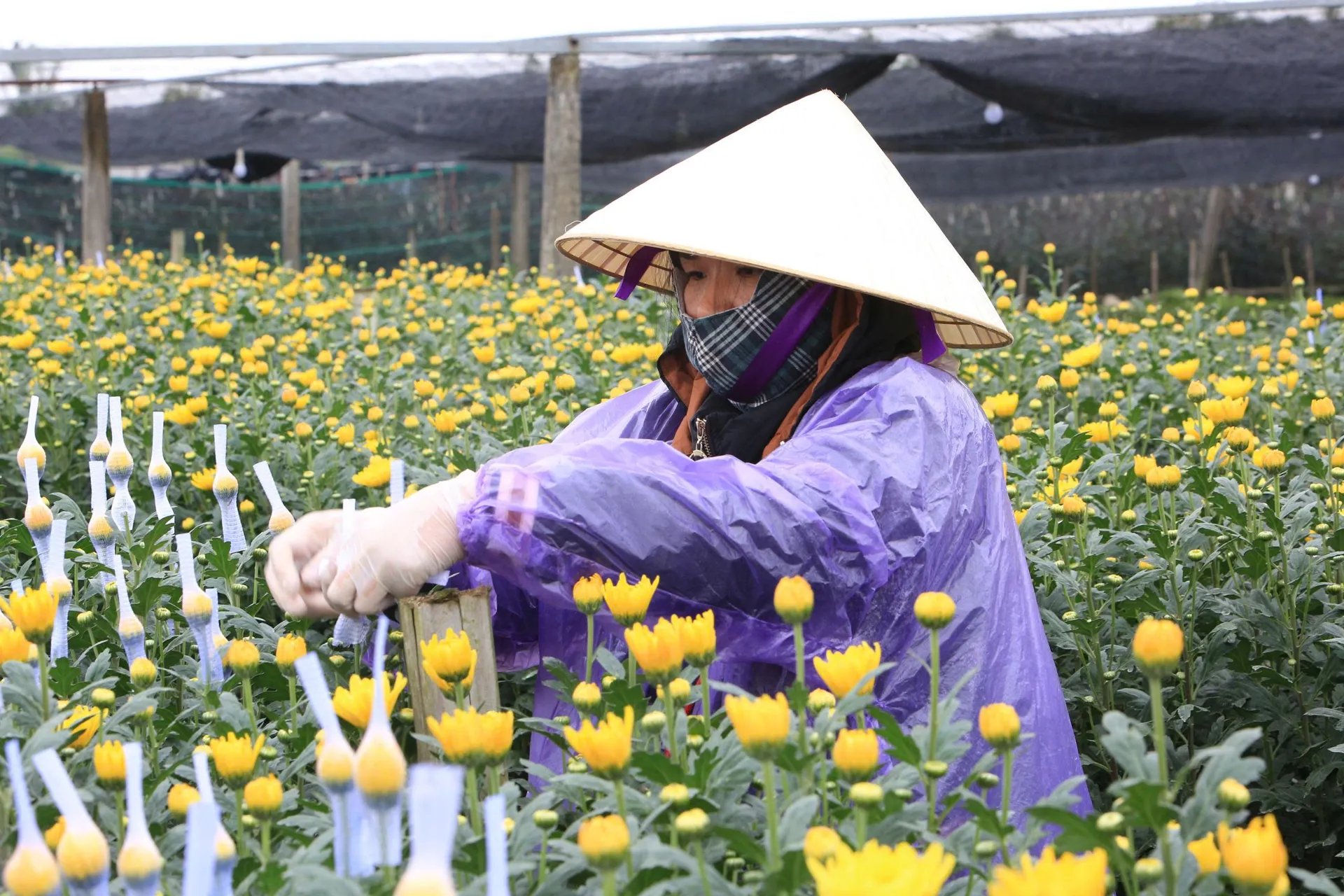 Người dân tất bật chăm sóc từng luống hoa trong không khí lao động khẩn trương.