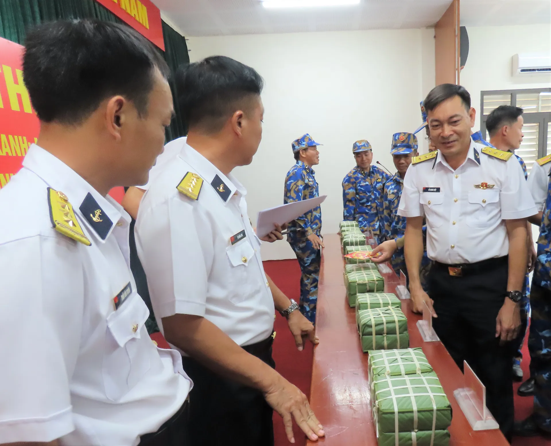 Hội thi gói bánh chưng năm nay có 8 đội tham gia với hai nội dung: thi gói, nấu bánh chưng; thi nấu ăn, bày cỗ ngày Tết. Dưới bàn tay khéo léo của những người lính biển, cùng sự chuẩn bị chu đáo về nguyên liệu, những cặp bánh chưng đã được hoàn thành trong thời gian 20 phút.