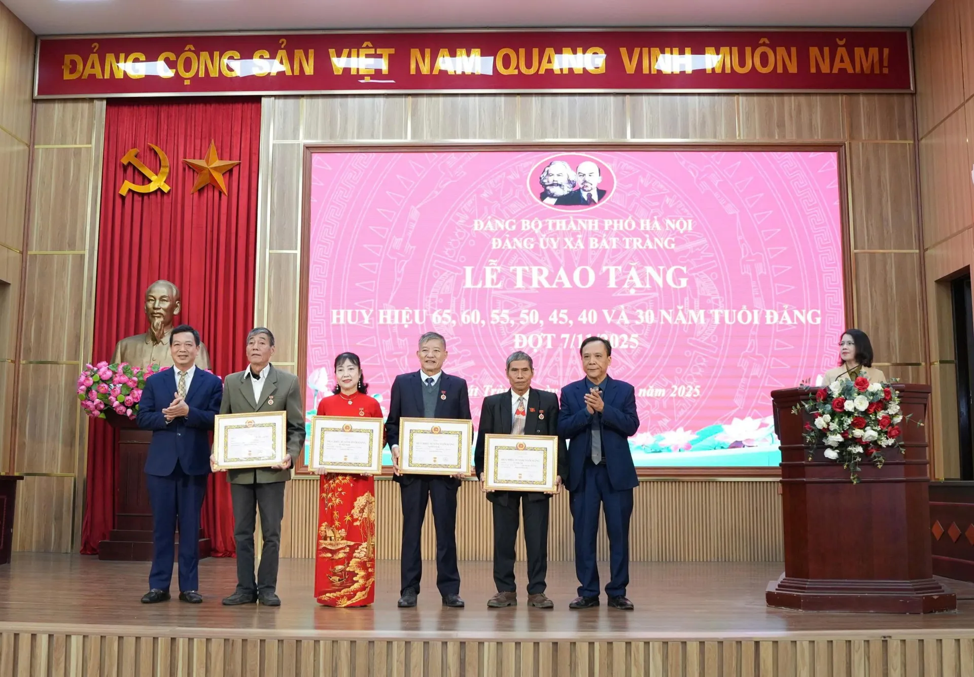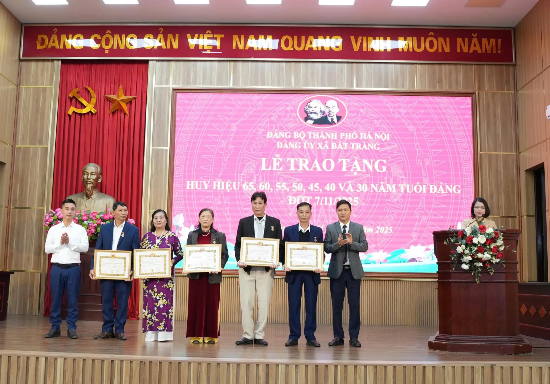 Kinhtedothi-Chào mừng thành công Đại hội đại biểu Đảng bộ TP Hà Nội lần thứ XVIII, nhiệm kỳ 2025–2030 và hướng tới kỷ niệm 108 năm Ngày Cách mạng Tháng Mười Nga vĩ đại (07/11/1917 – 07/11/2025), ngày 4/11, Ban Thường vụ Đảng ủy xã Bát Tràng long trọng tổ chức Lễ trao tặng, truy tặng Huy hiệu Đảng đợt 7/11 cho các đảng viên thuộc Đảng bộ.
