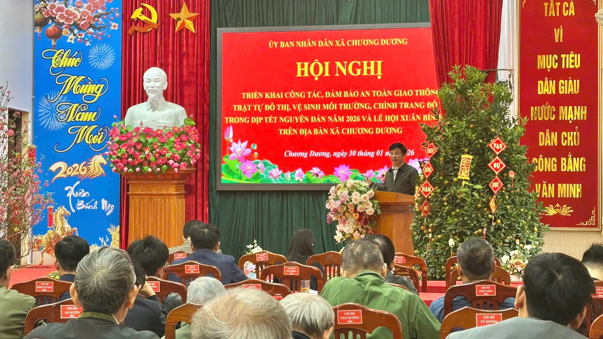 Kinhtedothi - Để đảm bảo trật tự ATGT, trật tự công cộng, vệ sinh môi trường trong dịp Tết Nguyên đán Bính Ngọ năm 2026, sáng 30/1, UBND xã Chương Dương triển khai Phương án để tiếp tục chuẩn bị ra quân đảm bảo trật tự ATGT, cảnh quan đô thị, môi trường...liên quan đến các “điểm nghẽn”.
