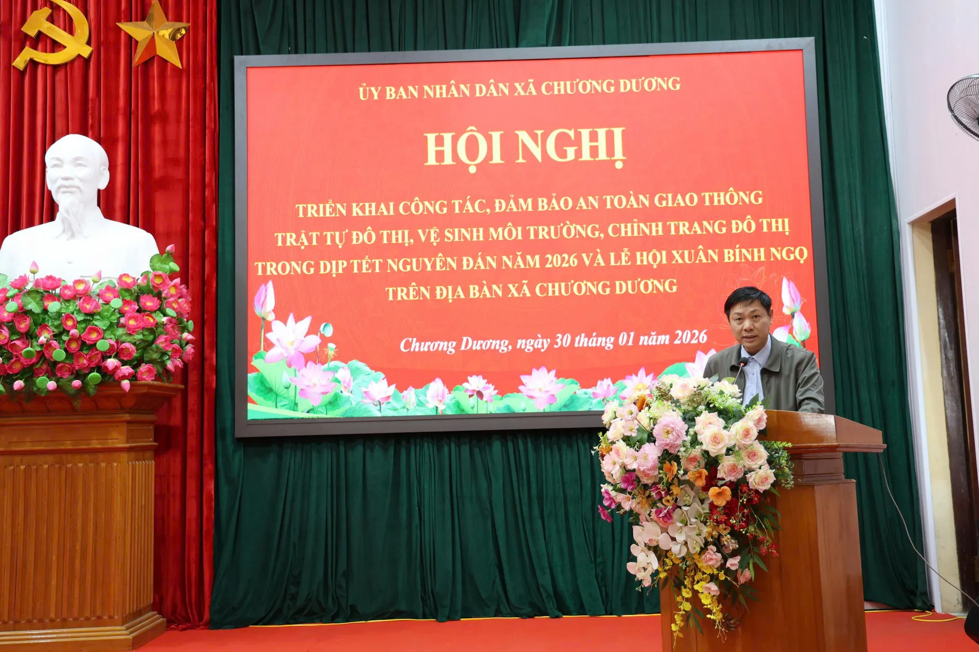 Chủ tịch UBND xã Chương Dương Từ Ngọc Thành phát biểu ý kiến giao nhiệm vụ cho các đơn vị, cơ quan