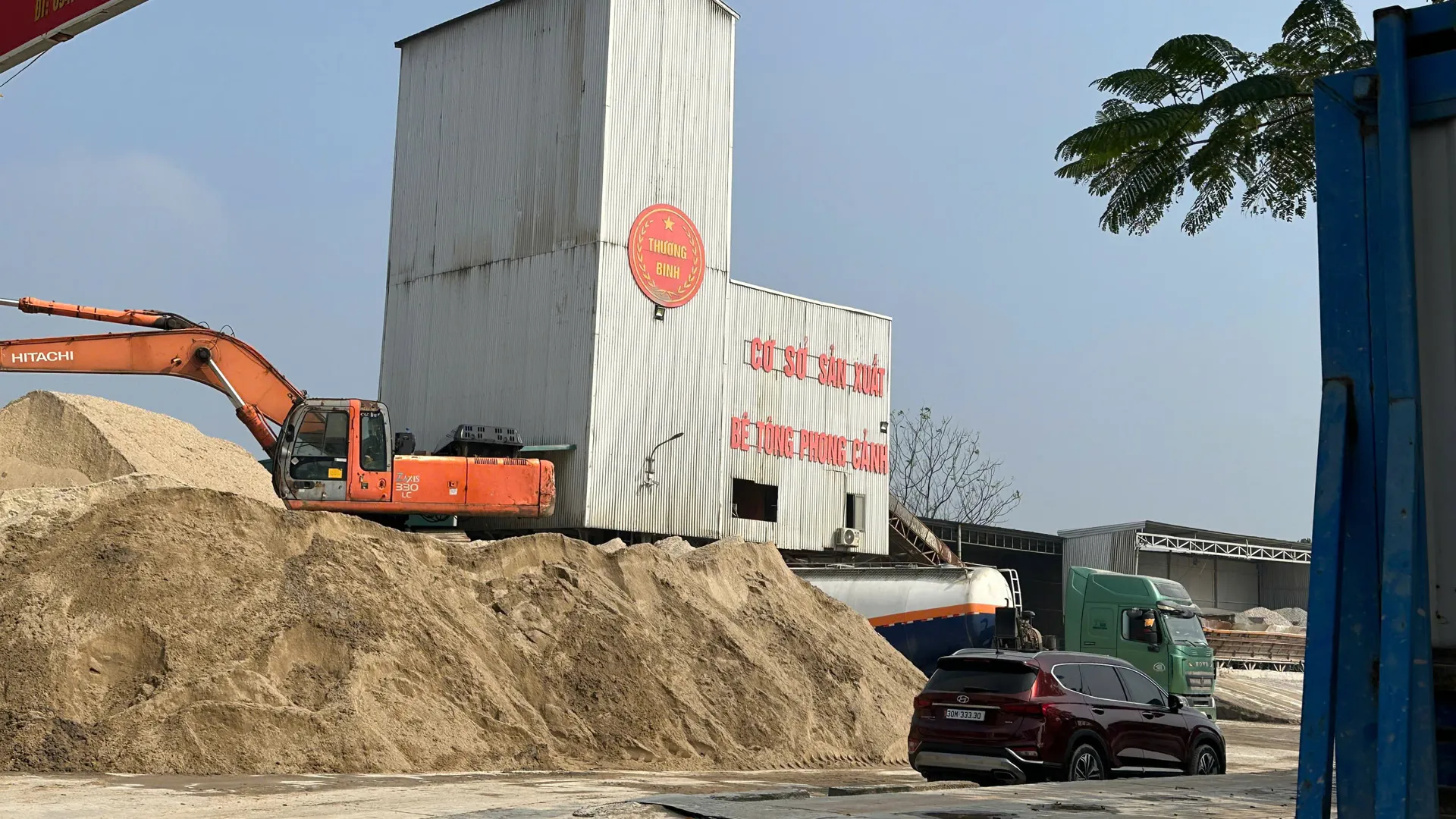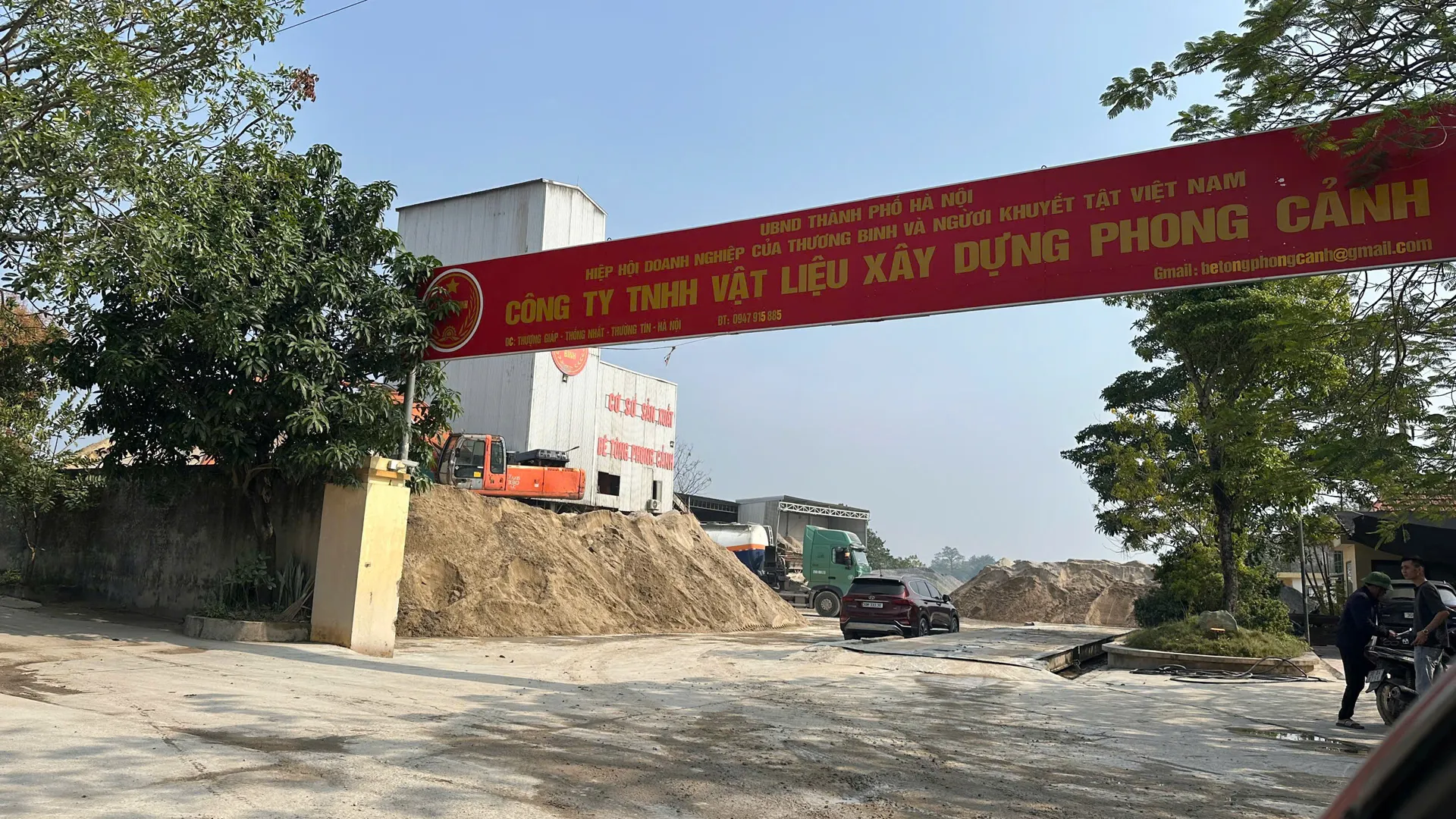 Đi ở trên đê sông Hồng bất kỳ ai cũng đều có thể nhìn thấy trạm bê tông của Công ty TNHH vật liệu xây dựng Phong Cảnh