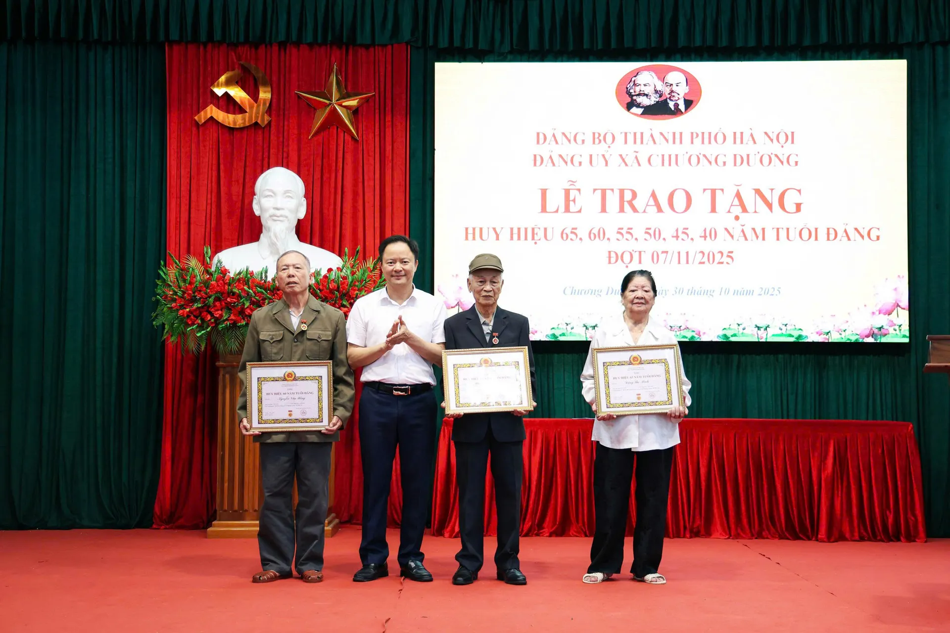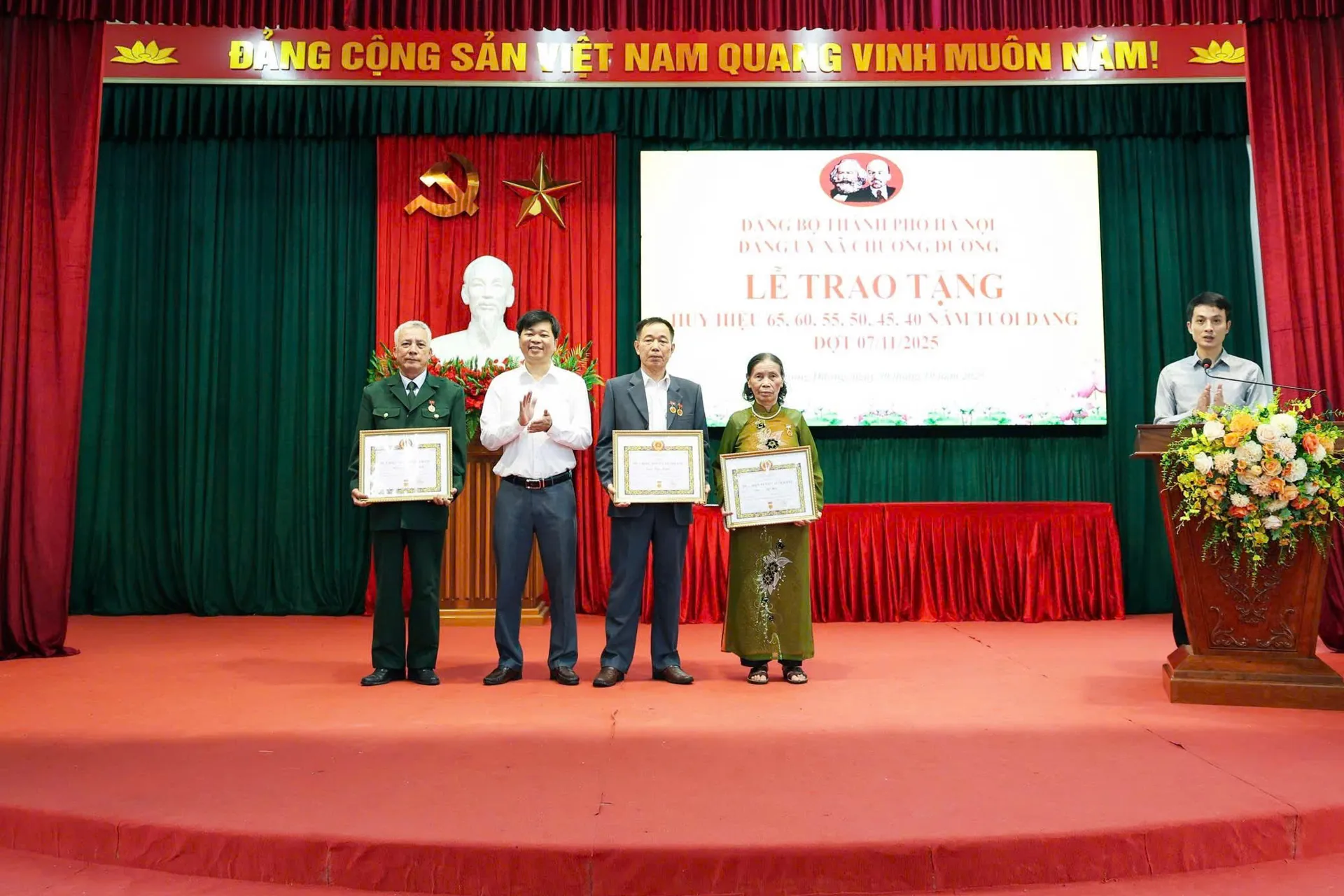 Trong đợt trao tặng huy hiệu này, Đảng bộ xã Chương Dương vinh dự có 13 đảng viên được nhận huy hiệu 65, 55, 45, 40 năm tuổi Đảng, phần thưởng cao quý ghi nhận quá trình cống hiến, rèn luyện và trưởng thành của các đảng viên.