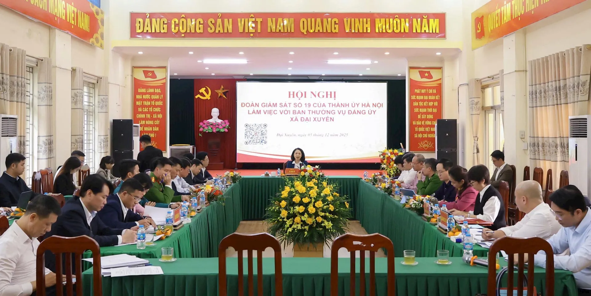 Kinhtedothi - Chiều 5/12, Đoàn giám sát số 19 của Ban Thường vụ Thành ủy do Phó Chủ tịch UBND thành phố Hà Nội Vũ Thu Hà làm Trưởng đoàn đã làm việc với xã Đại Xuyên về công tác lãnh đạo, chỉ đạo và tổ chức thực hiện các nhiệm vụ cấp bách những tháng cuối năm 2025.