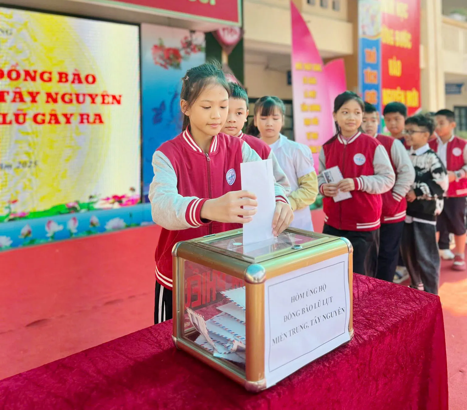 Tại Trường Tiểu học Đan Phượng, hoạt động quyên góp ủng hộ đồng bào vùng lũ cũng nhận được sự hưởng ứng, đồng lòng của cán bộ, giáo viên và đông đảo học sinh với tổng số tiền hơn 59,2 triệu đồng. Hiệu trưởng Trường Tiểu học Đan Phượng Nguyễn Thị Oanh cho biết, hoạt động này đã tạo nên sự lan tỏa mạnh mẽ trong toàn trường, góp phần xây dựng một môi trường giáo dục giàu tính nhân ái và trách nhiệm; nơi các em học sinh không chỉ được trang bị tri thức mà còn được bồi dưỡng tình yêu thương và ý thức sống vì cộng đồng. “Đây cũng là mục tiêu quan trọng mà nhà trường luôn hướng tới: nuôi dưỡng tâm hồn đẹp, truyền cảm hứng yêu thương và hành động thiết thực vì xã hội” – nhà giáo Nguyễn Thị Oanh chia sẻ.