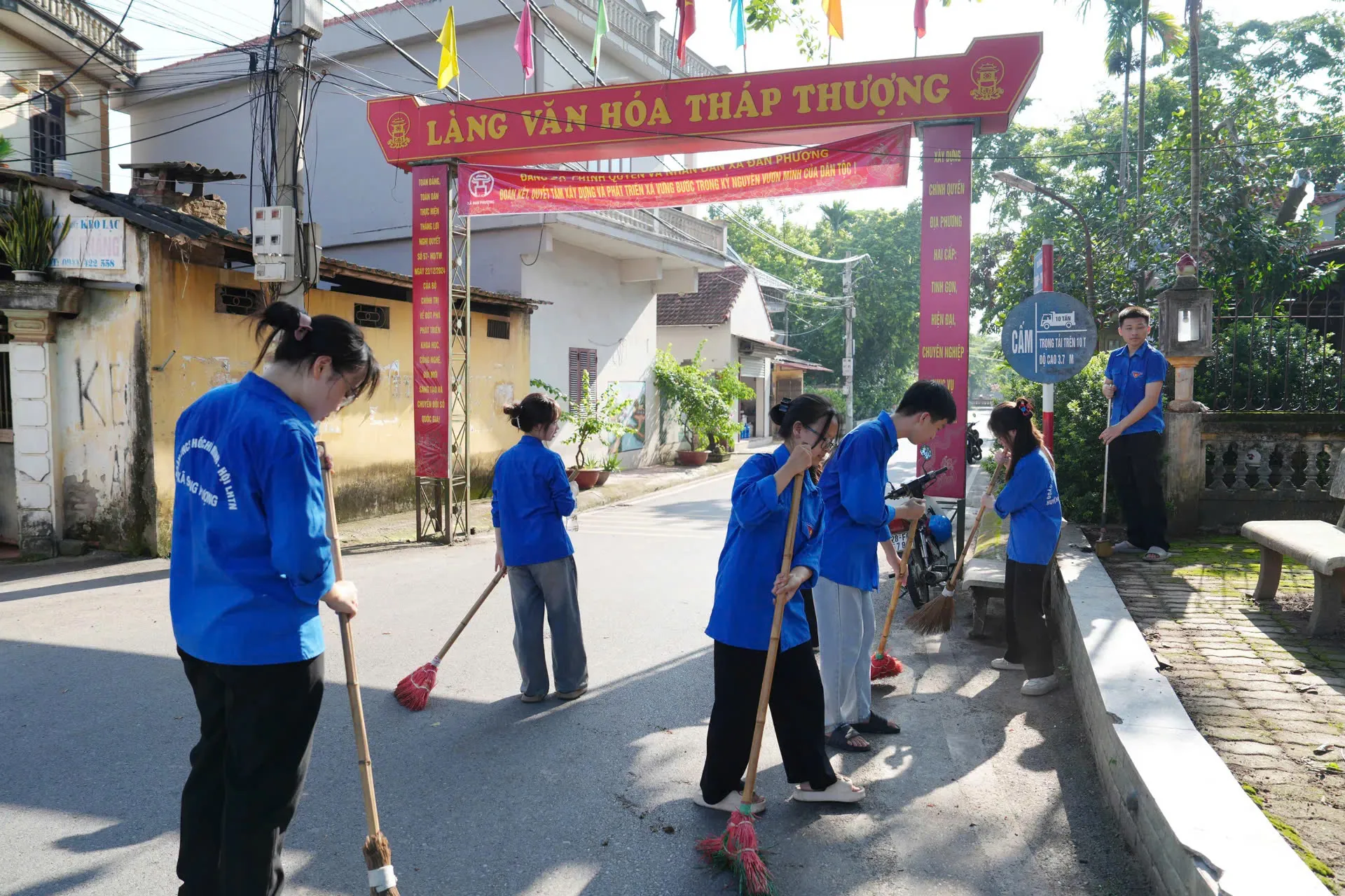 Đoàn viên thanh niên thôn Tháp Thượng tham gia vệ sinh môi trường. Ảnh: Thiên Tú