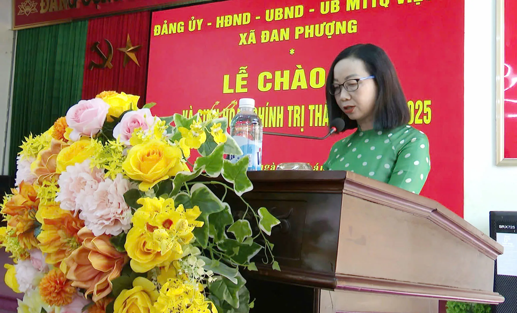 Trong phần sinh hoạt chính trị, Phó Bí thư Thường trực Đảng ủy xã Đan Phượng Nguyễn Thị Hiền đã báo cáo kết quả sau một tháng triển khai mô hình chính quyền địa phương hai cấp tại xã Đan Phượng.