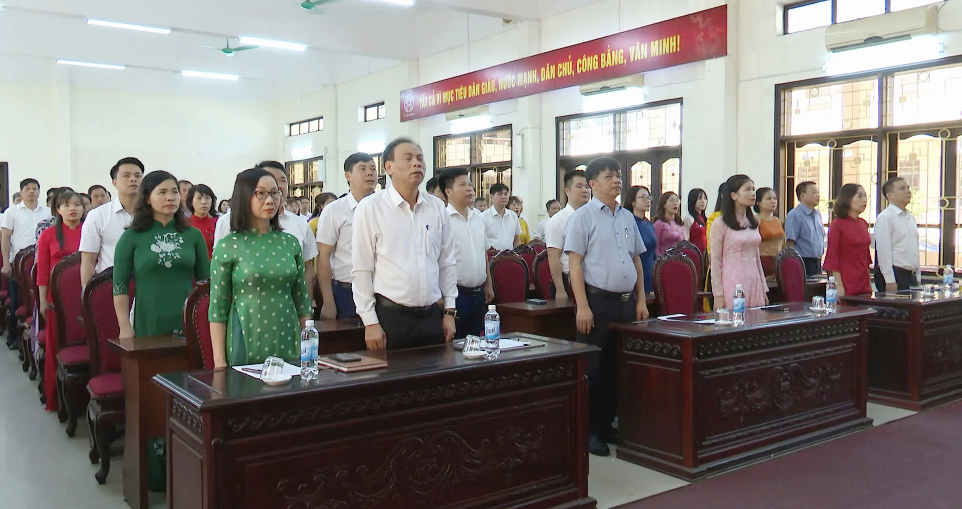 Trong không khí trang nghiêm, toàn thể cán bộ, đảng viên, công chức, viên chức xã Đan Phượng đã cùng hát vang bài Quốc ca đầy hào hùng.