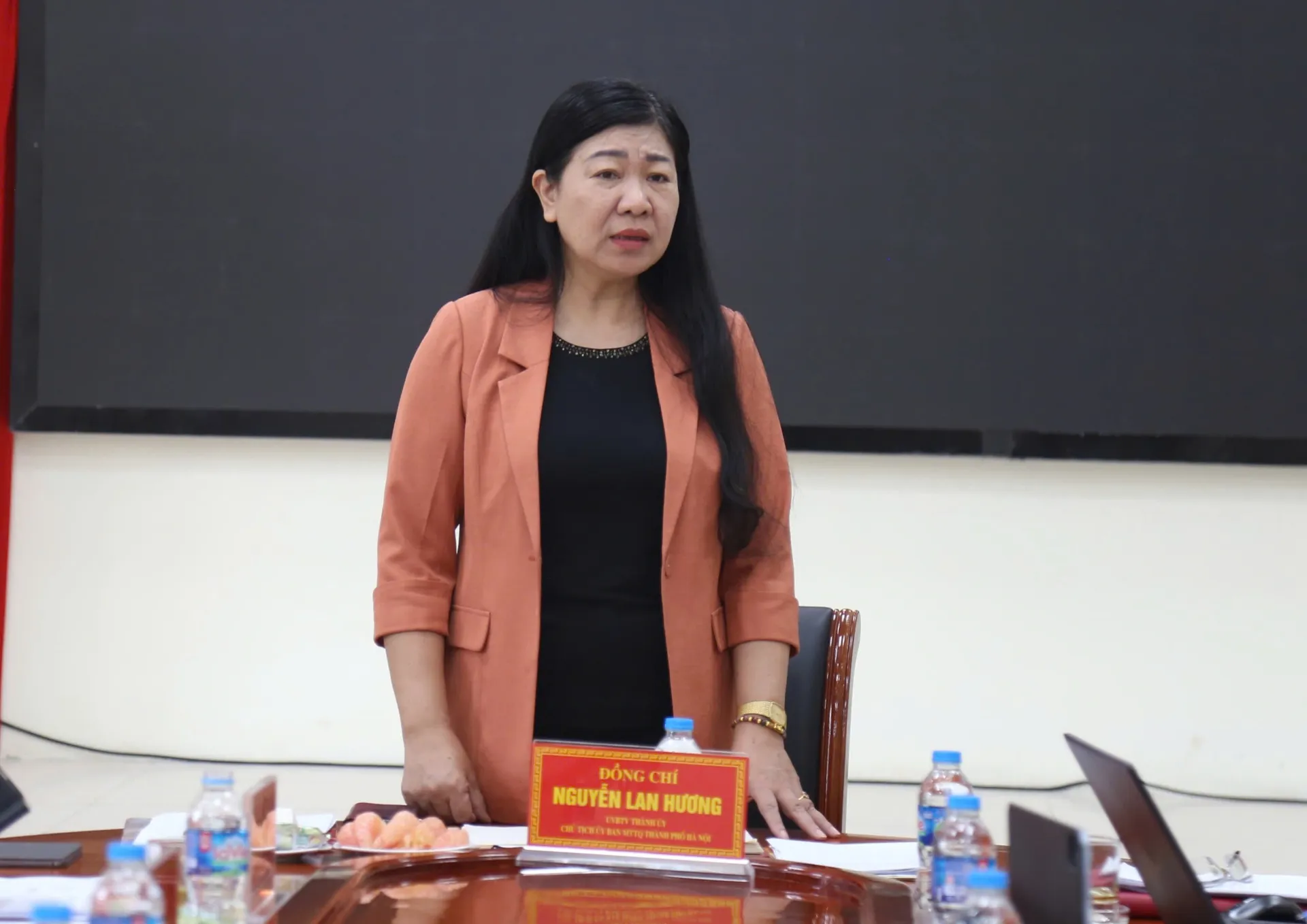 Ủy viên Ban Thường vụ Thành ủy, Chủ tịch Ủy ban MTTQ Việt Nam TP Hà Nội Nguyễn Lan Hương phát biểu kết luận buổi làm việc.