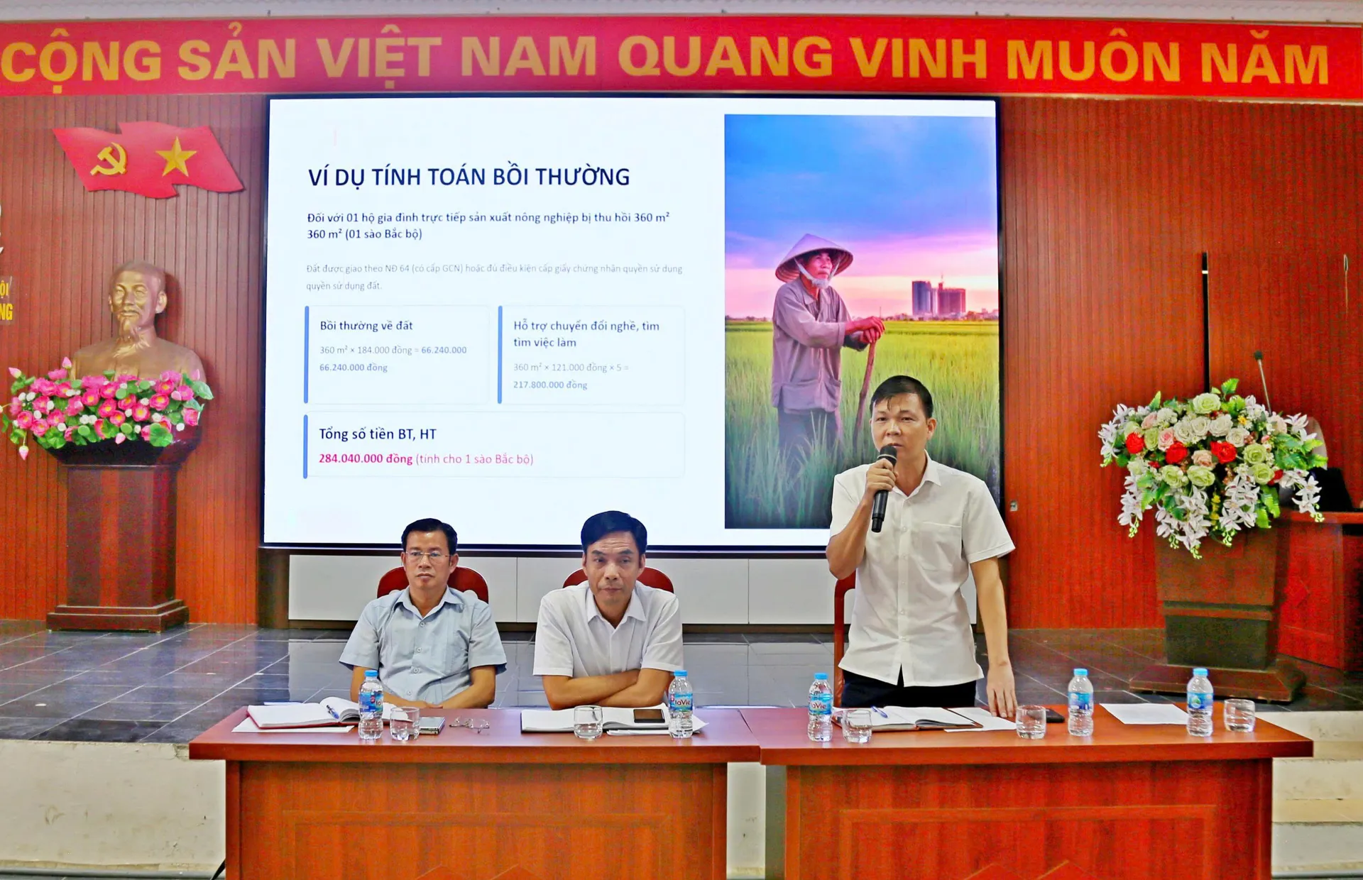 Đại diện xã Đoài Phương xã giải đáp, phân tích làm rõ để các hộ dân hiểu rõ về chủ trương, chính sách liên quan đến dự án