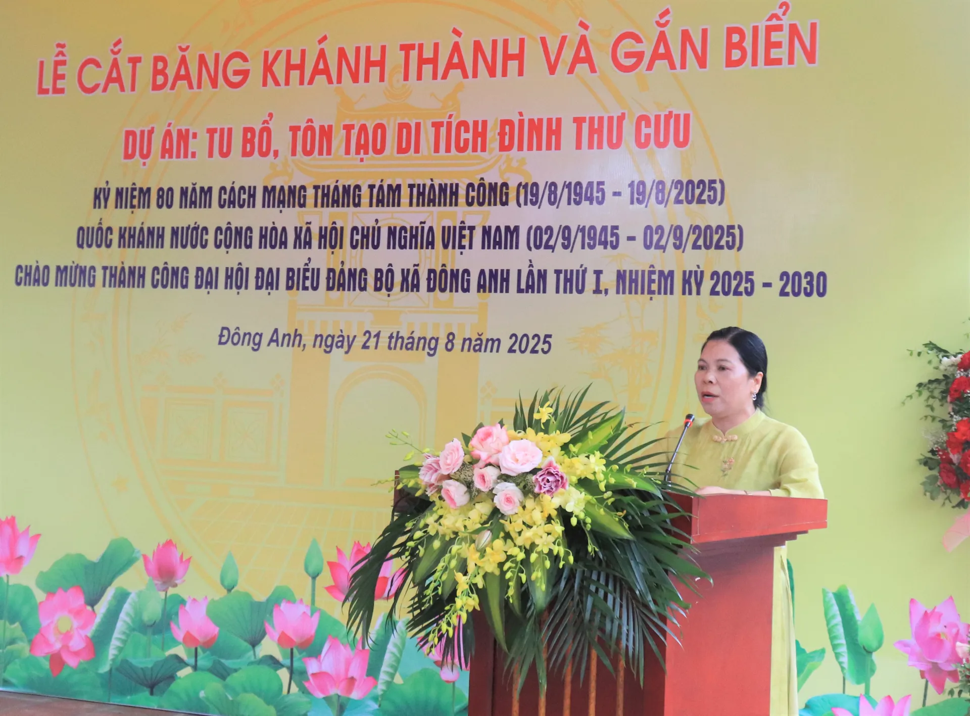 Phát biểu tại buổi lễ, Phó Chủ tịch UBND xã Đông Anh Nguyễn Thị Lương nhấn mạnh: Đình Thư Cưu có lịch sử lâu đời, đây là không gian sinh hoạt văn hóa, tâm linh của cộng đồng, gắn liền với tín ngưỡng thờ cúng vua An Dương Vương. Năm 2011, di tích đã được xếp hạng cấp Thành phố, trở thành một phần quan trọng trong tổng thể di sản Cổ Loa. Trong quá trình thi công, nhiều khó khăn phát sinh, đặc biệt là khâu lựa chọn nhân công có tay nghề cao về phục dựng di tích.
