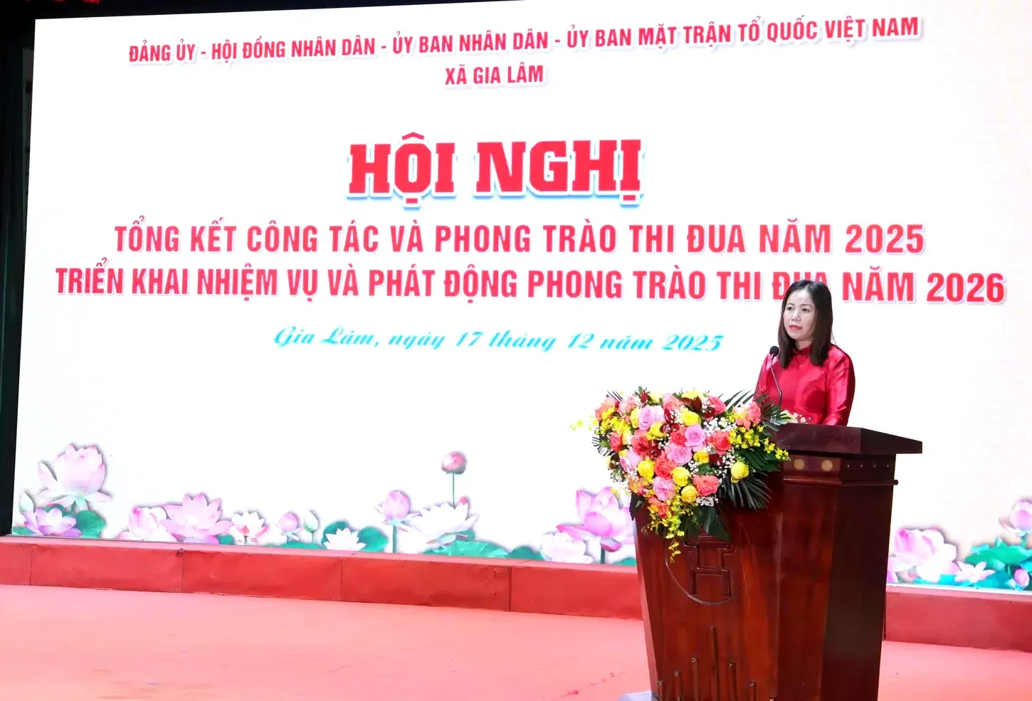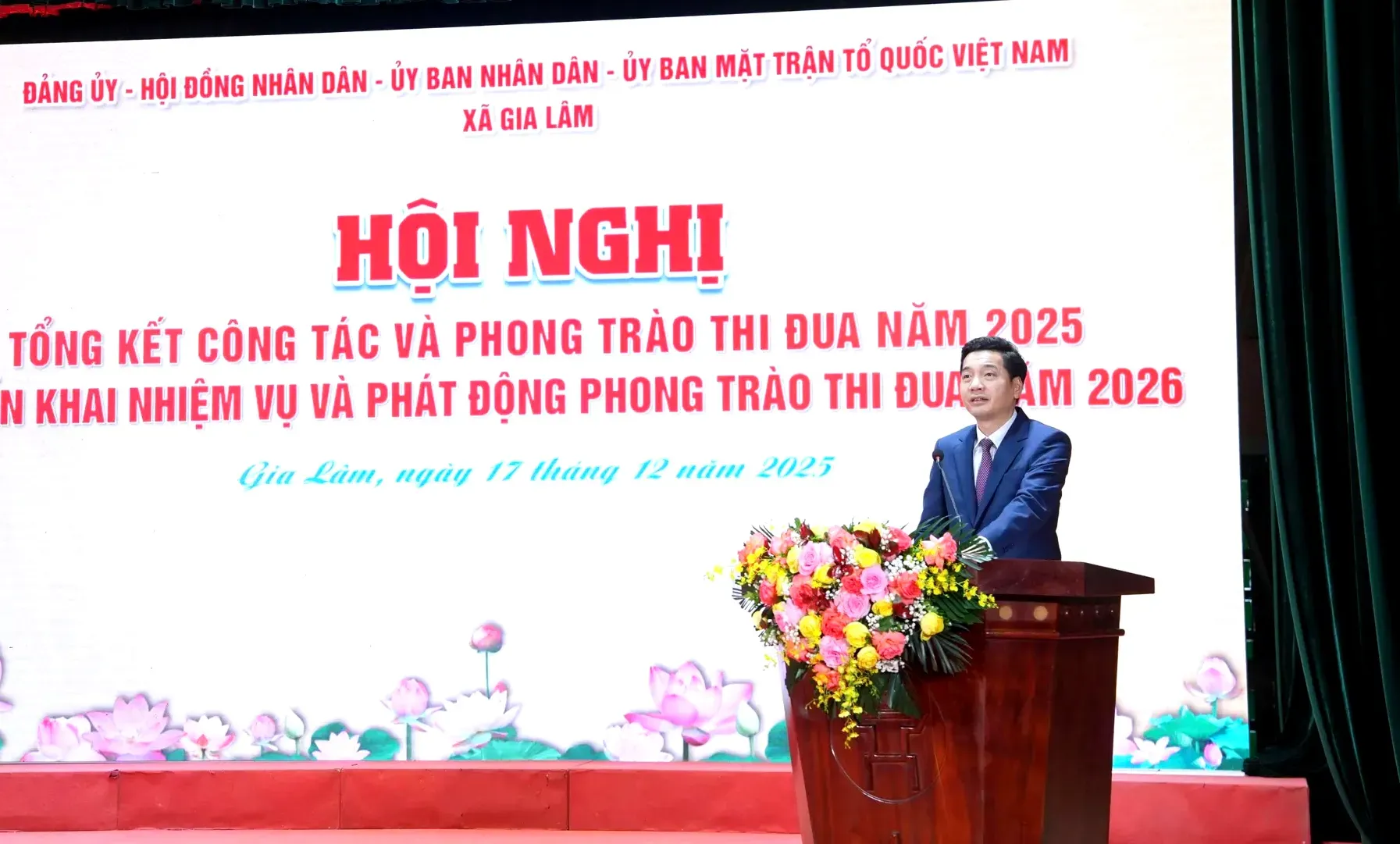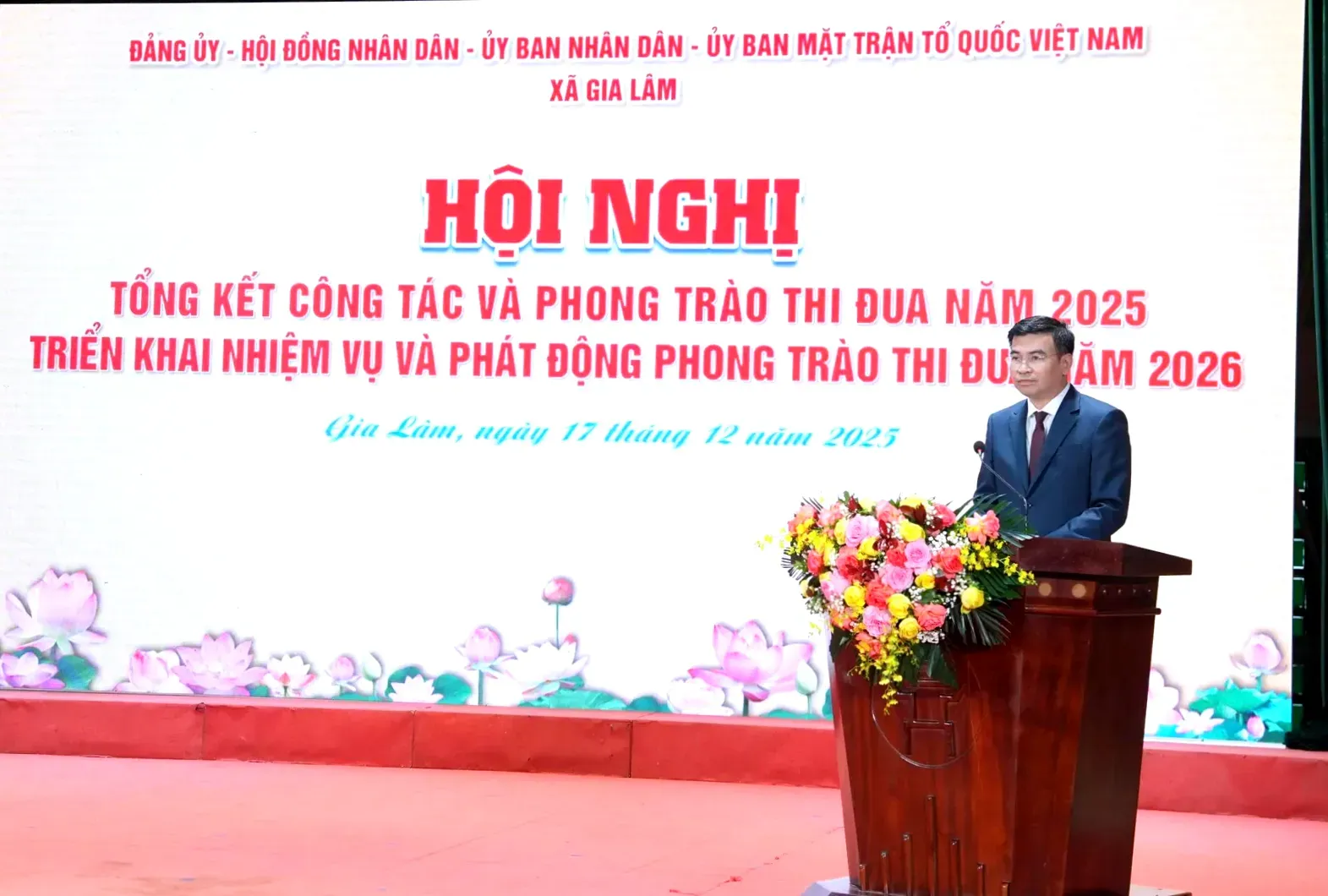 Phát biểu chỉ đạo tại hội nghị, đồng chí Nguyễn Việt Hà – Thành ủy viên, Bí thư Đảng ủy, Chủ tịch HĐND xã Gia Lâm ghi nhận, biểu dương và đánh giá cao những kết quả quan trọng mà Đảng bộ, chính quyền, MTTQ, các đoàn thể và Nhân dân xã Gia Lâm đã đạt được trong năm 2025; khẳng định đây là năm đầu tiên vận hành mô hình chính quyền địa phương 02 cấp với nhiều đổi mới, song toàn xã đã nỗ lực vượt khó, hoàn thành và hoàn thành vượt mức 100% các chỉ tiêu, nhiệm vụ được giao, tạo nền tảng quan trọng cho giai đoạn phát triển tiếp theo.