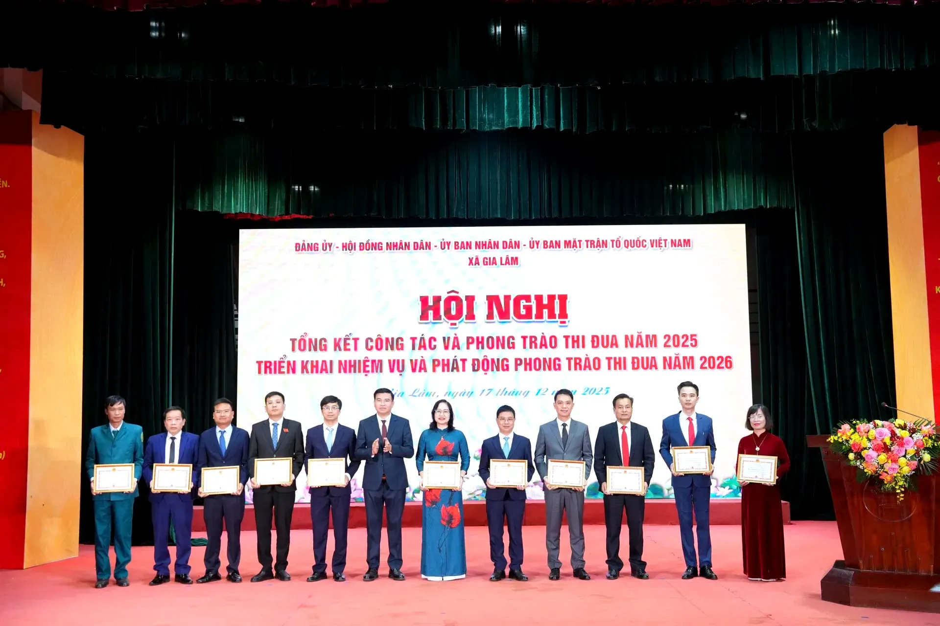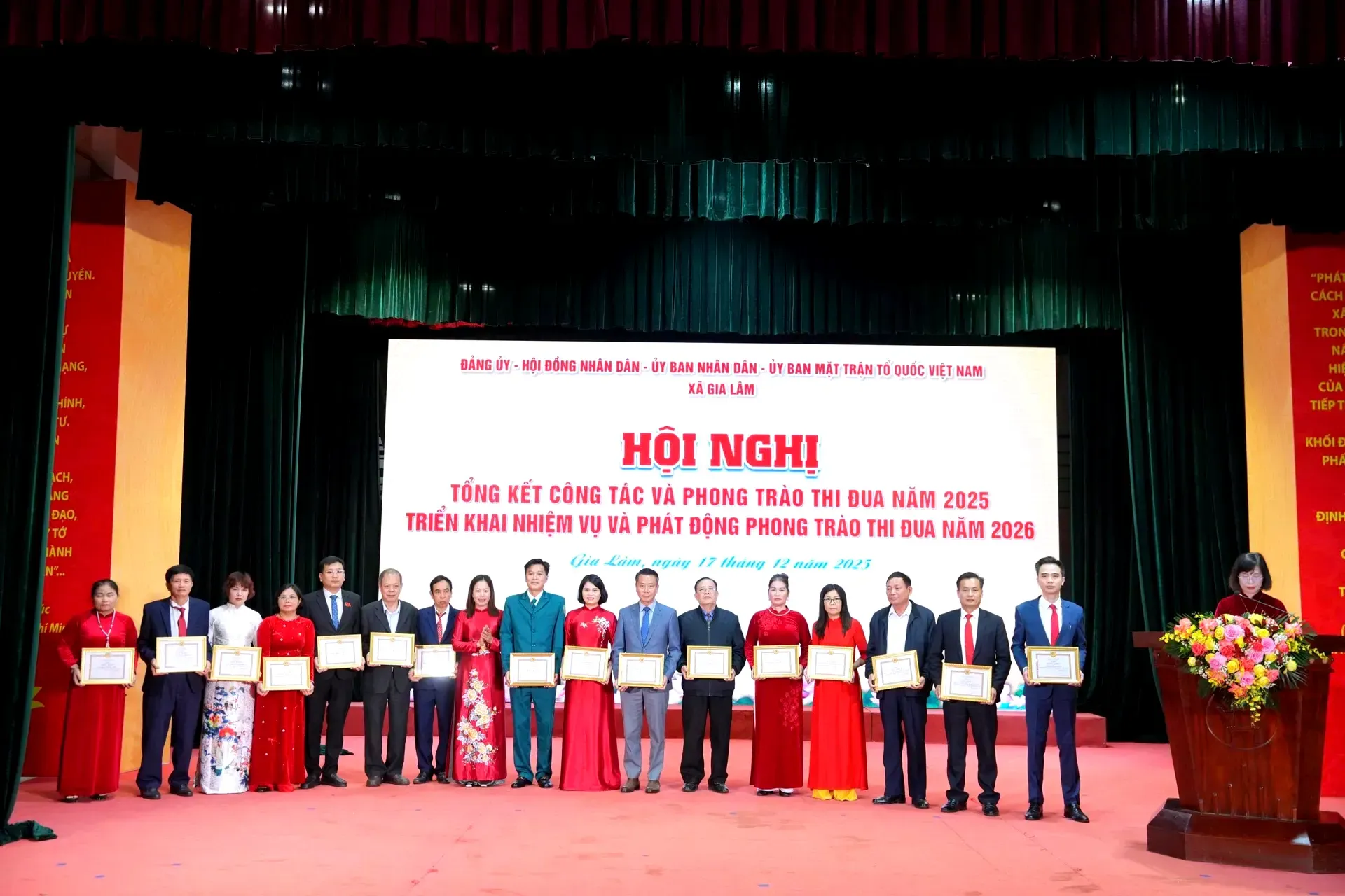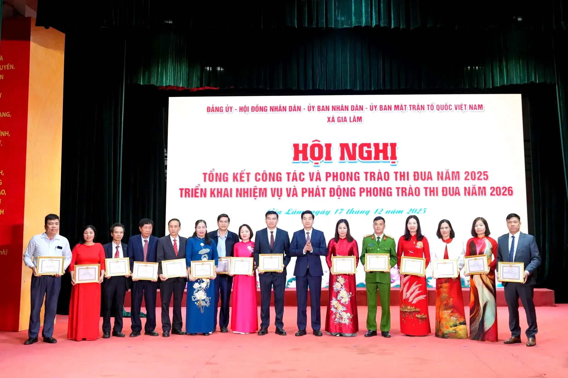 Với những kết quả đạt được, trong năm 2025, nhiều tập thể, cá nhân của xã Gia Lâm được khen thưởng; trong đó 01 tập thể được nhận Bằng khen của Thủ tướng Chính phủ, 02 tập thể nhận Bằng khen của UBND Thành phố, 16 chi, đảng bộ hoàn thành xuất sắc nhiệm vụ, 326 cá nhân hoàn thành xuất sắc nhiệm vụ.