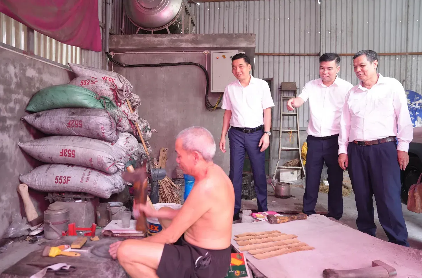 Thường trực Đảng ủy xã cũng đã đến khảo sát địa điểm dự kiến xây dựng nhà thờ Lưỡng quốc tướng quân Nguyễn Sơn và thăm các hộ gia đình làng nghề tiêu biểu trên địa bàn.