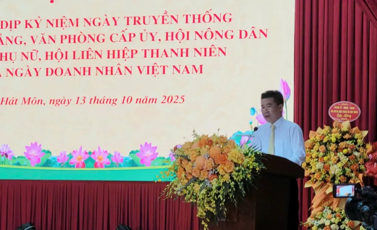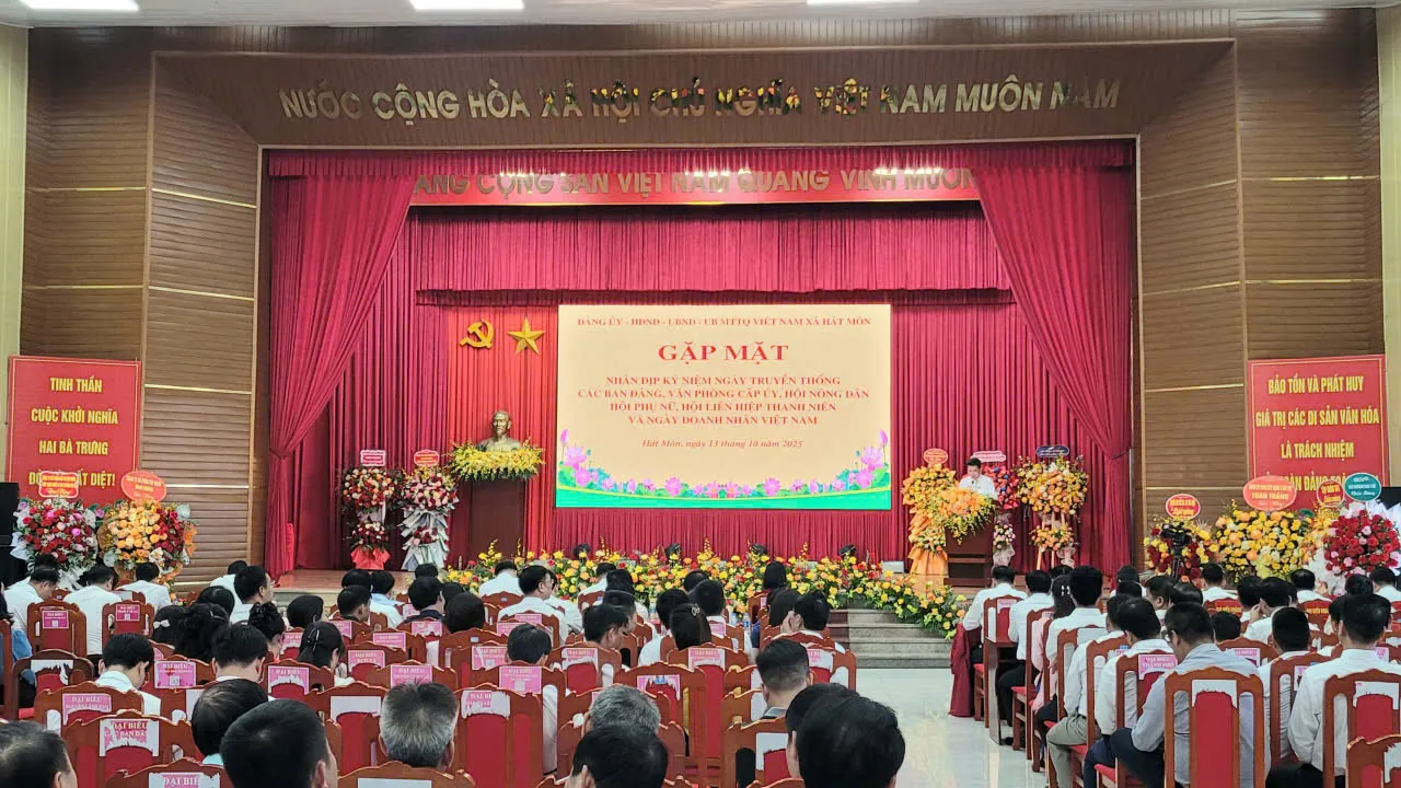 Ngày 13/10, xã Hát Môn tổ chức hội nghị gặp mặt kỷ niệm 95 năm Ngày truyền thống các ban Đảng, Văn phòng cấp ủy, Hội Nông dân, Hội Liên hiệp Phụ nữ, Hội Liên hiệp Thanh niên và Ngày Doanh nhân Việt Nam.