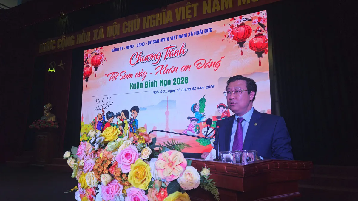 Với phương châm “không để bất kỳ người dân nào không có Tết”, Đảng ủy, HĐND,UBND và MTTQ xã Hoài Đức đã tặng quà cho 330 hộ gia đình có hoàn cảnh khó khăn trên địa bàn. Chương trình thể hiện sự quan tâm, động viên kịp thời để các hộ khó khăn, đoàn viên, công nhân lao động được vui tết đón xuân - Đồng thời, lan tỏa thông điệp đoàn kết, chia sẻ với tinh thần “Không ai bị bỏ lại phía sau”… Buổi chiều và tối cùng ngày, tại xã Hoài Đức sẽ diễn ra các hoạt động như thi gói bánh chưng, thi bày mâm ngũ quả ngày Tết; khai mạc Hội chợ hoa Xuân Bính Ngọ năm 2026 và bắn pháo hoa chào mừng năm mới.