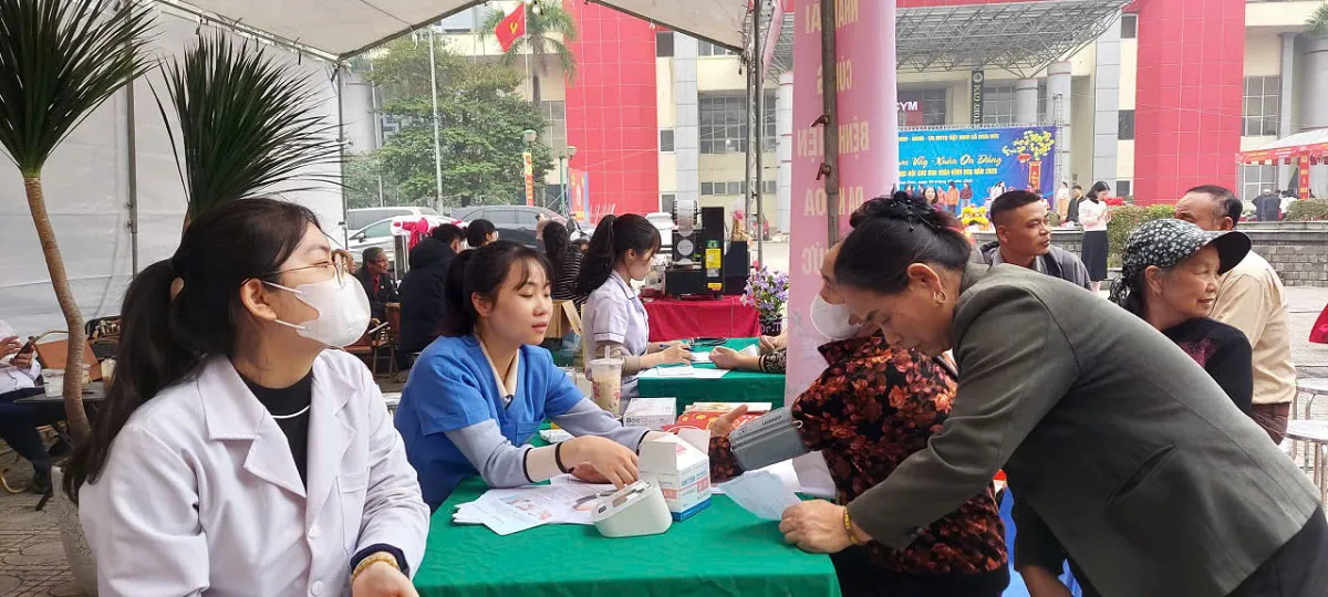 Tại chương trình "Tết sum vầy - Xuân ơn Đảng" của xã Hoài Đức, hàng trăm người dân đã được các bác sỹ của Bệnh viện Đa khoa Hoài Đức khám bệnh, phát thuốc miễn phí.