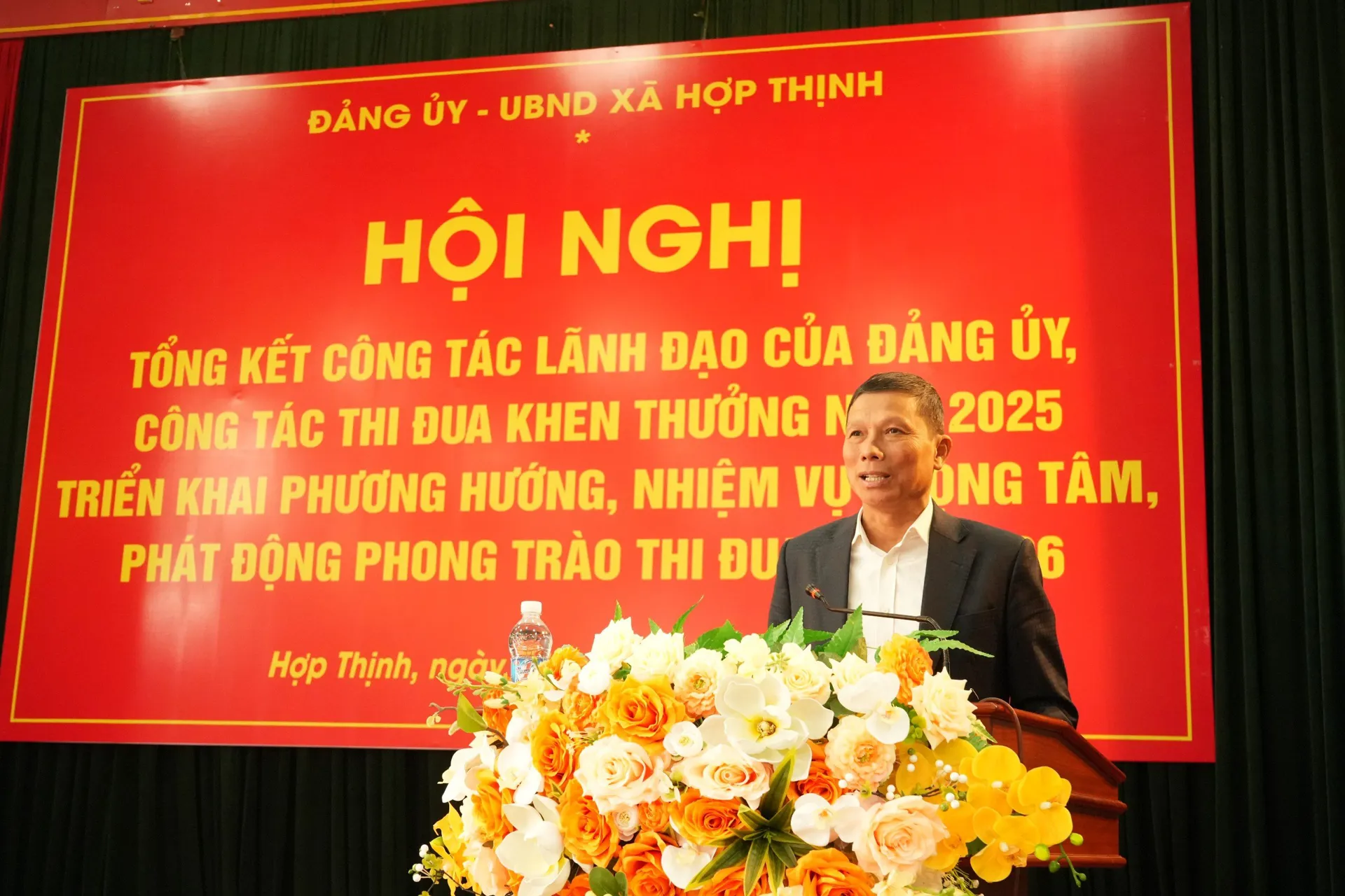 Kinhtedothi- Sáng 25/12, Đảng ủy - UBND xã Hợp Thịnh (tỉnh Bắc Ninh) tổ chức Hội nghị tổng kết công tác lãnh đạo; công tác thi đua khen thưởng năm 2025, triển khai phương hướng nhiệm vụ và phát động phong trào thi đua năm 2026.
