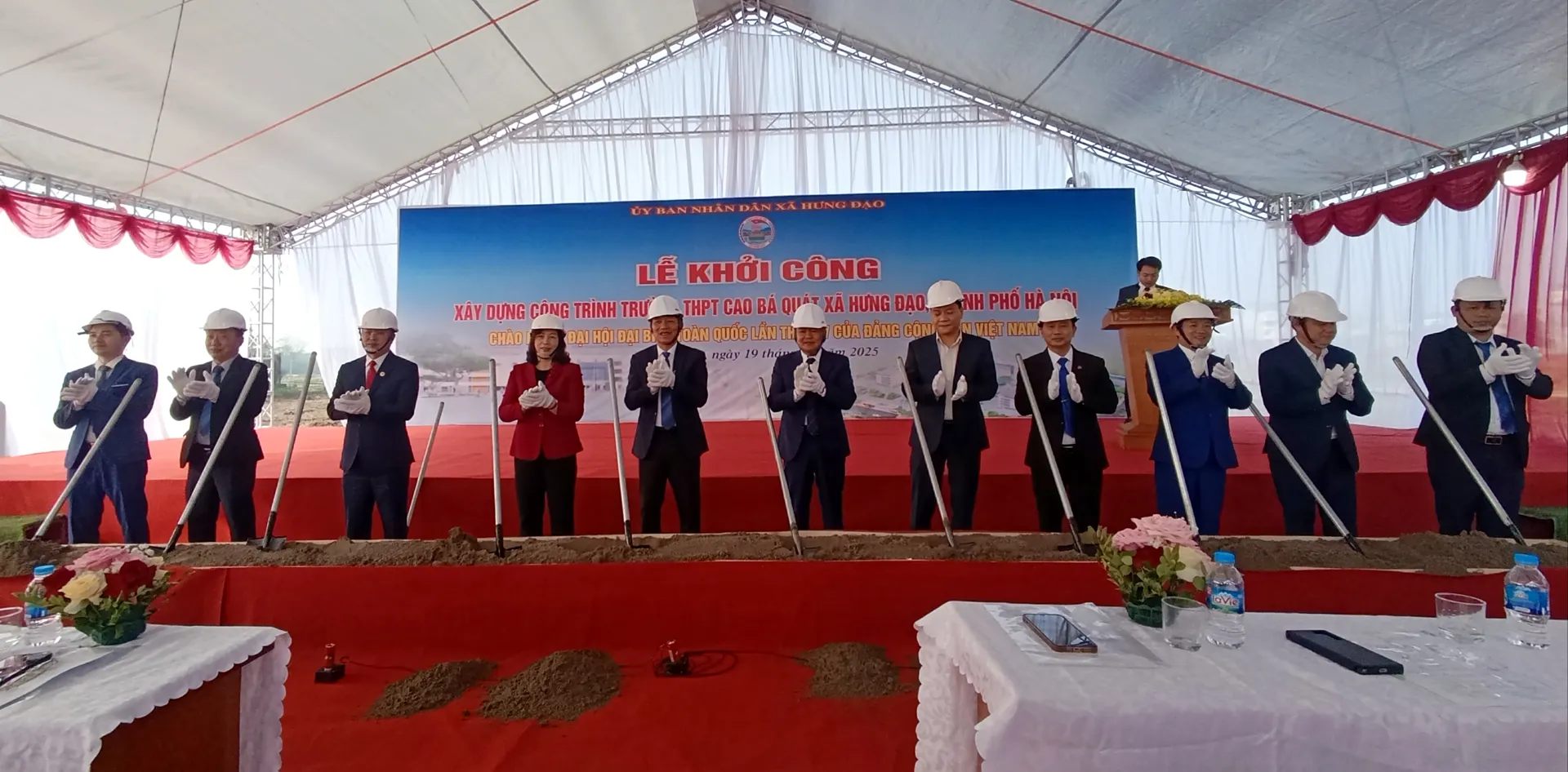 Kinhtedothi - Sáng 19/12, UBND xã Hưng Đạo tổ chức Lễ khởi công xây dựng công trình Trường THPT Cao Bá Quát. Đây là công trình chào mừng Đại hội đại biểu toàn quốc lần thứ XIV của Đảng.