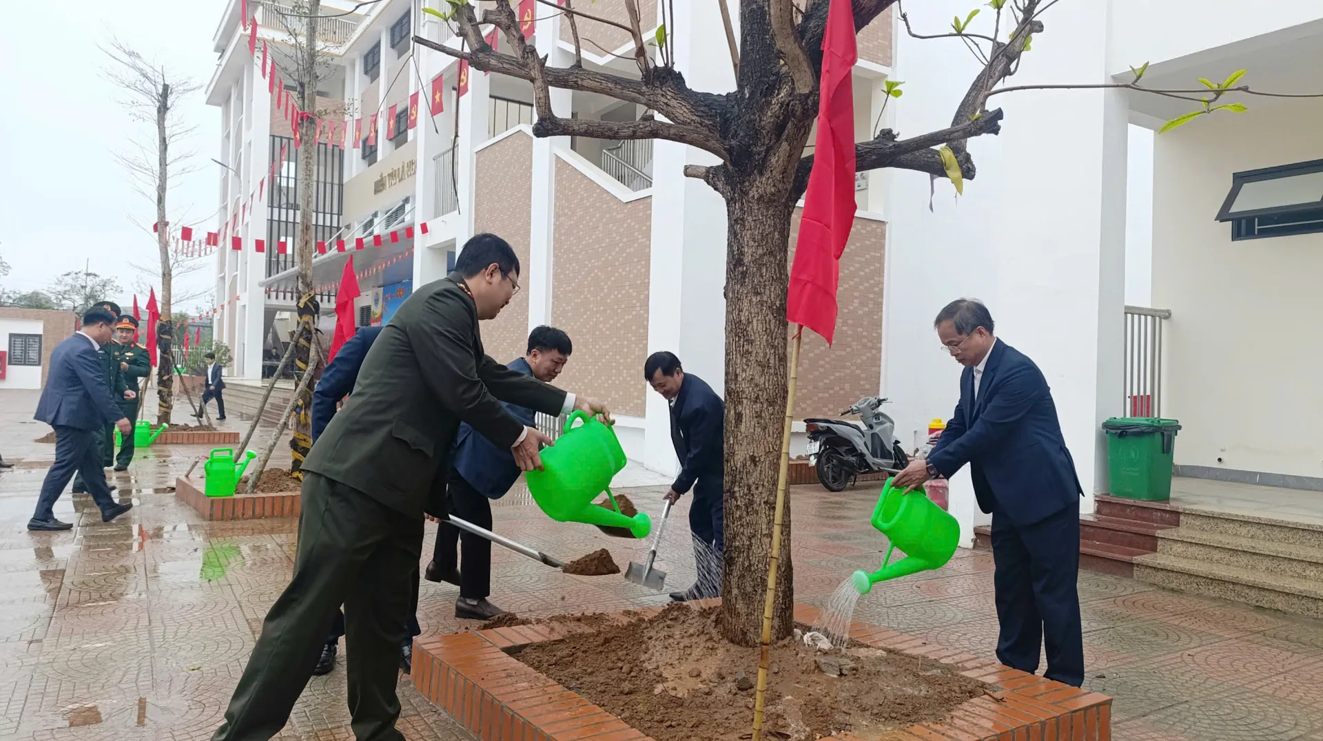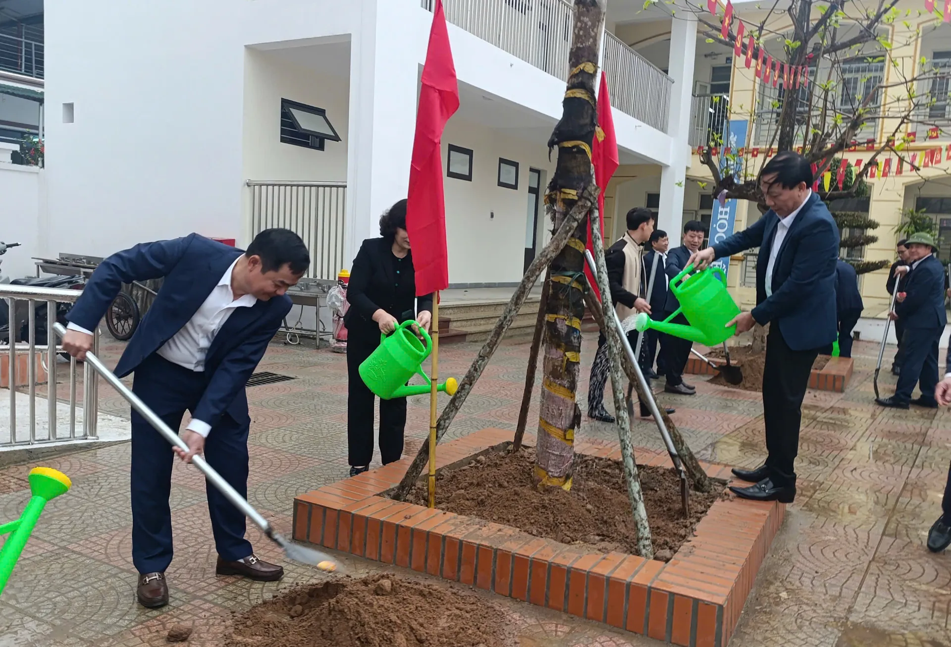 Lãnh đạo xã Hưng Đạo tham gia trồng cây tại Trường Tiểu học Đồng Quang B ngay sau lễ phát động.