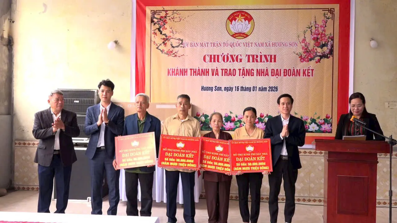 Chủ tịch Ủy ban MTTQ Việt Nam xã Hương Sơn Lê Đức Anh cho biết, phát huy tinh thần tương thân tương ái, lá lành đùm lá rách của dân tộc, dịp này Ủy ban MTTQ xã trao 4 nhà đại đoàn kết với tổng số tiền 200 triệu đồng, cho các hộ gia đình: Bà Nguyễn Thị Giang (thôn An Đà), Hoàng Thị Quyên (thôn Đông Mỹ), ông Nguyễn Văn Mạnh (thôn Kim Bôi), ông Kiều Đình Tuấn (thôn Bạch Tuyết).