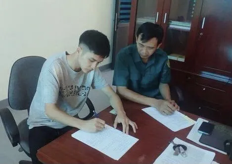 Công dân Lại Minh Sơn viết đơn tình nguyện tại trụ sở Ban CHQS xã Hương Sơn