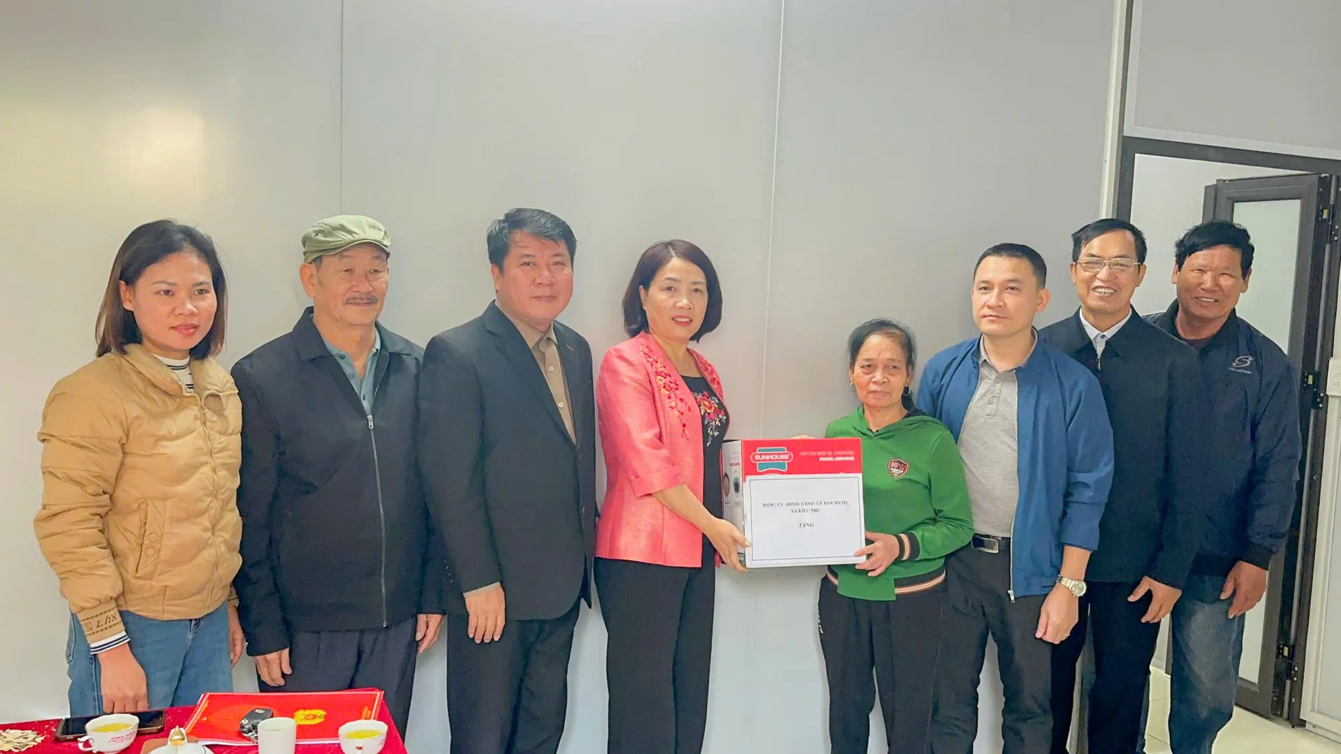 Chủ tịch Ủy ban MTTQ xã Kiều Phú Nguyên Thị Thu Trang đại diện trao tặng quà cho các hộ nhân dịp khánh thành, bàn giao nhà đại đoàn kết.