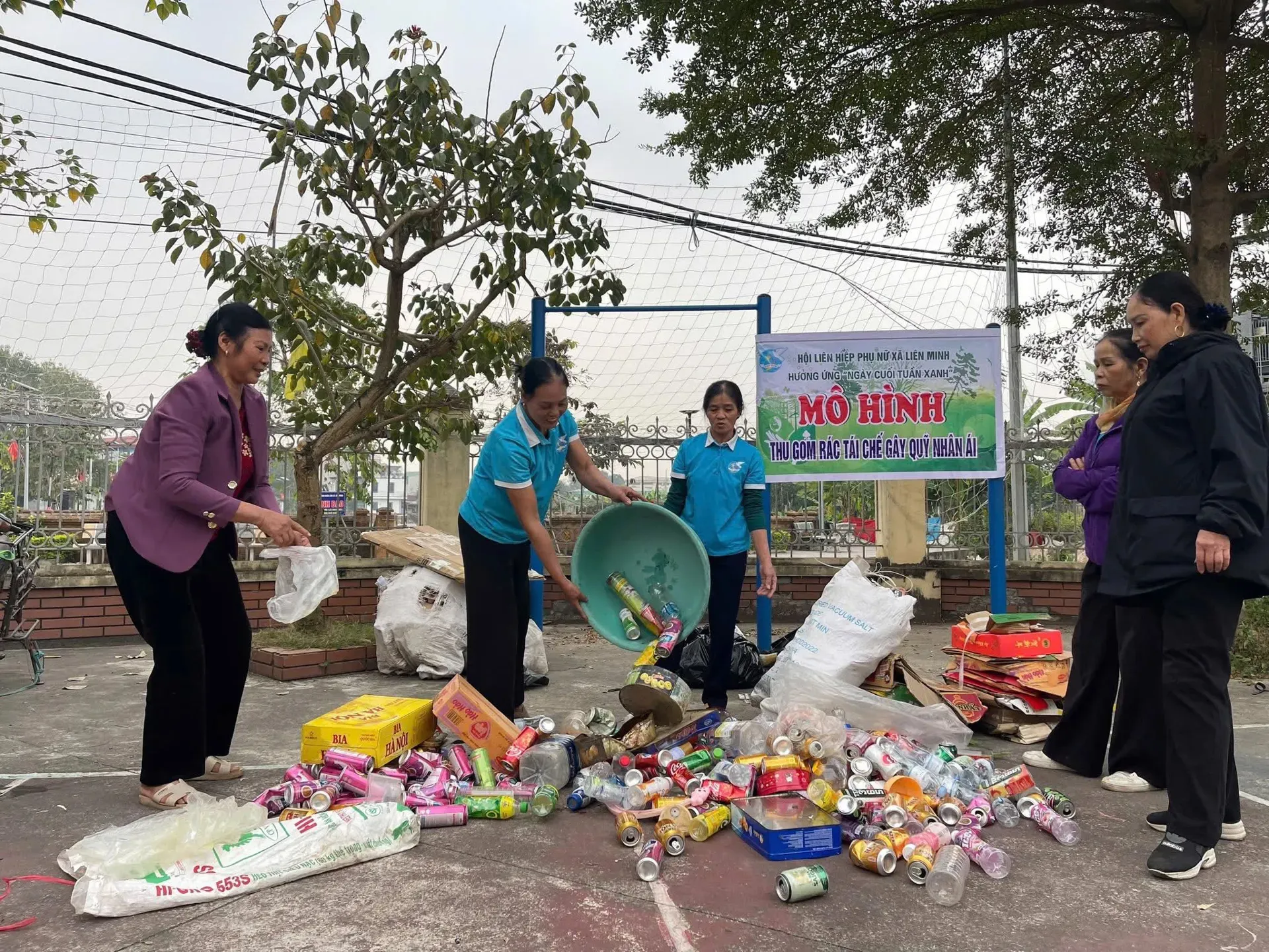 Không chỉ Đoàn Thanh niên, công tác bảo vệ môi trường còn nhận được sự tham gia tích cực của Hội Phụ nữ xã Liên Minh. Theo đó, hưởng ứng “Ngày Chủ nhật xanh” tháng 1/2026, Hội Phụ nữ xã Liên Minh đã tổ chức nhiều hoạt động thiết thực như tham gia vệ sinh môi trường, duy trì và nhân rộng mô hình “Thu gom phế liệu gây quỹ nhân ái”, thu gom được hơn 3.5700 vỏ lon bia, nước ngọt; 105kg bìa giấy; 230kg nhựa… Không chỉ góp phần giữ gìn cảnh quan môi trường xanh – sạch – đẹp, nâng cao ý thức bảo vệ môi trường trong cộng đồng, 100% số tiền thu được từ sản phẩm phế liệu được Hội Phụ nữ xã Liên Minh tổ chức tặng quà cho phụ nữ và trẻ em trên địa bàn xã nhân dịp Tết Nguyên đán Bính Ngọ 2026.