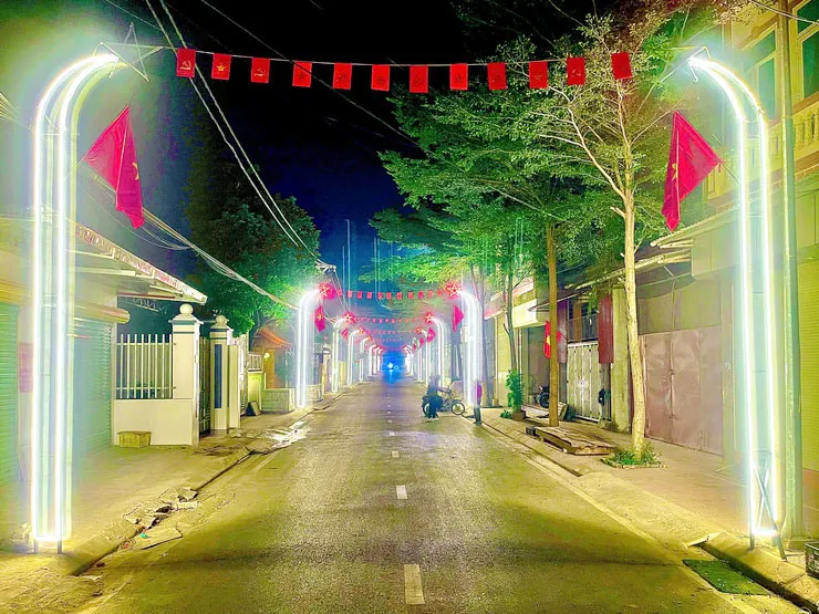 Hệ thống đèn Led chiếu sáng lung linh tại thôn 4 Trung Châu, xã Liên Minh.