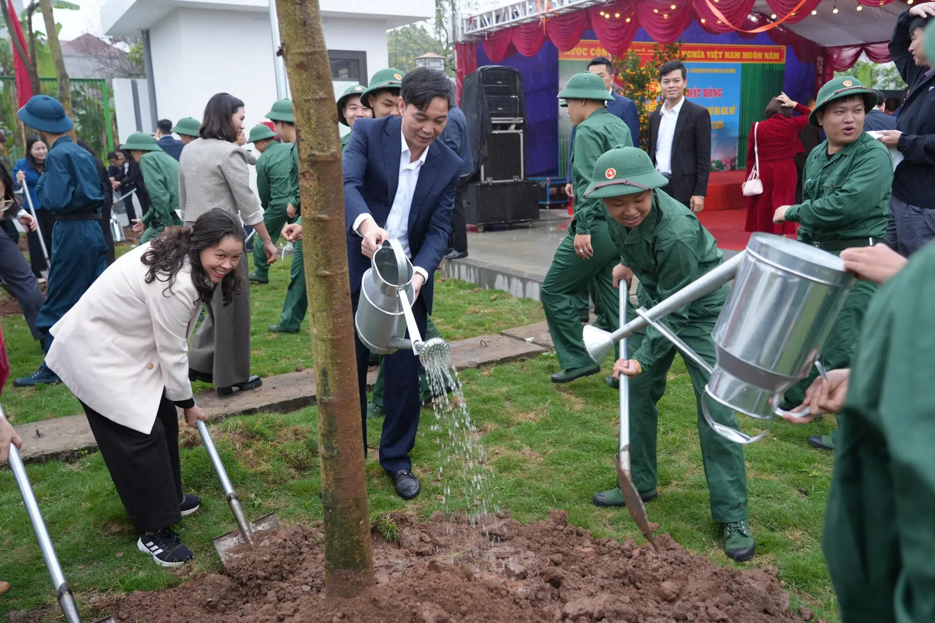 Ngay sau Lễ phát động, Bí thư Đảng ủy, Chủ tịch HĐND xã Liên Minh Nguyễn Tiến Toàn; Phó Bí thư Thường trực Đảng ủy xã Nguyễn Thị Hường; Phó Bí thư Đảng ủy, Chủ tịch UBND xã Nguyễn Quý Mạnh cùng các đại biểu đã tiến hành trồng mới cây xanh trong khuôn viên Ban Chỉ huy Quân sự xã Liên Minh.