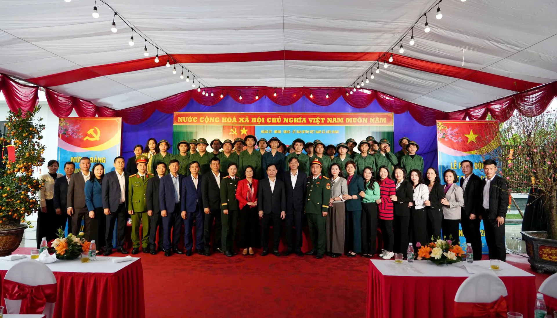 Lãnh đạo xã Liên Minh cùng các đại biểu chụp ảnh lưu niệm.